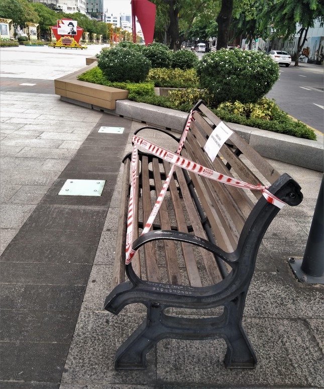 Những nhân viên bảo vệ cho biết: "Thực hiện giãn cách xã hội nên thành phố có chủ trương không tập trung đông người vui chơi, tập thể dục, vãn cảnh tại phố đi bộ Nguyễn Huệ. Thậm chí ngồi trên các ghế cũng không được. Đây là biện pháp nhằm phòng ngừa dịch bệnh COVID-19 lây lan".