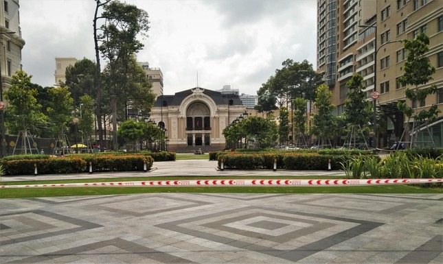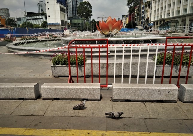 Phóng viên Tiền Phong đã ghi nhận quang cảnh phố đi bộ Nguyễn Huệ, quận 1, TPHCM thực hiện giãn cách xã hội trong ngày Quốc tế thiếu nhi 1/6/2021.