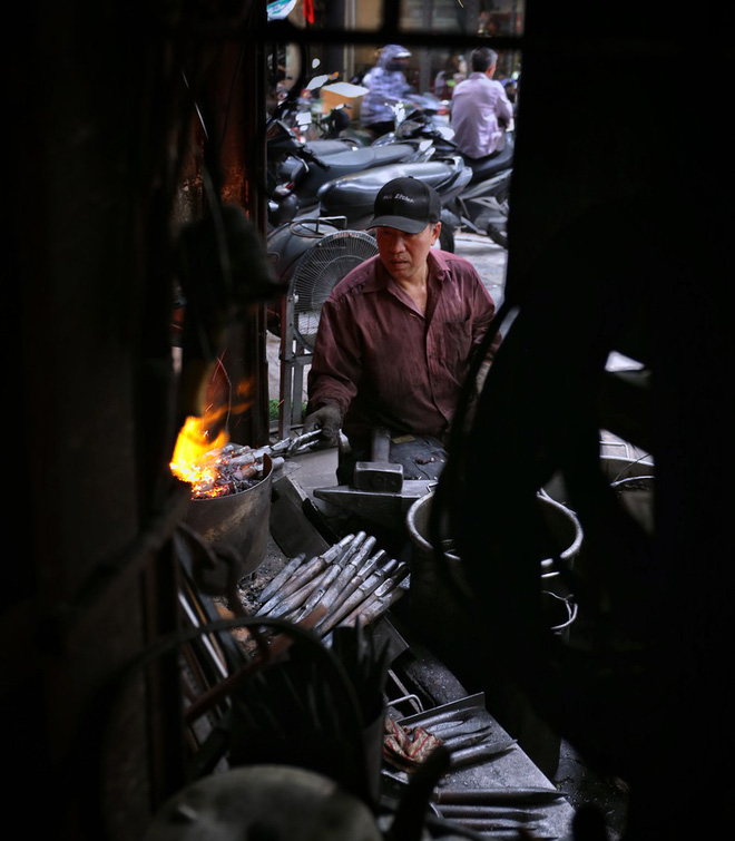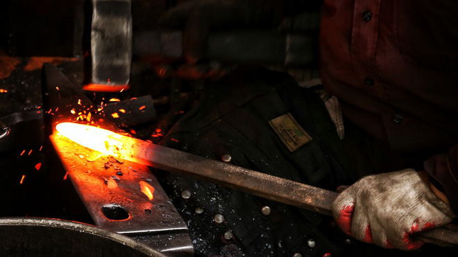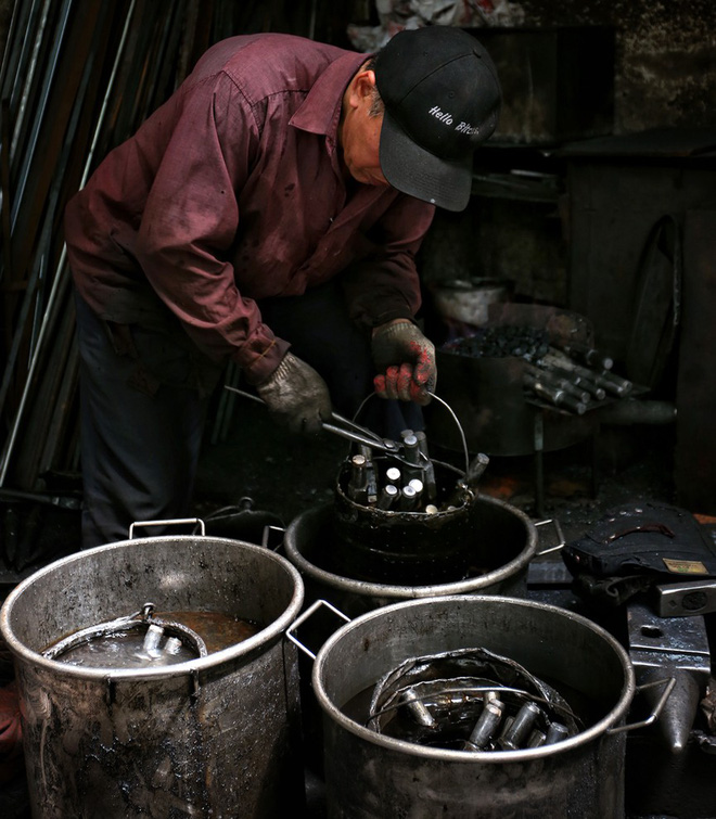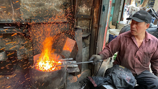 Hà Nội đang trong đợt nắng nóng đỉnh điểm, nhưng không vì thế mà các bể lò rèn tại phố Lò Rèn (quận Hoàn Kiếm, Hà Nội) tắt lửa.