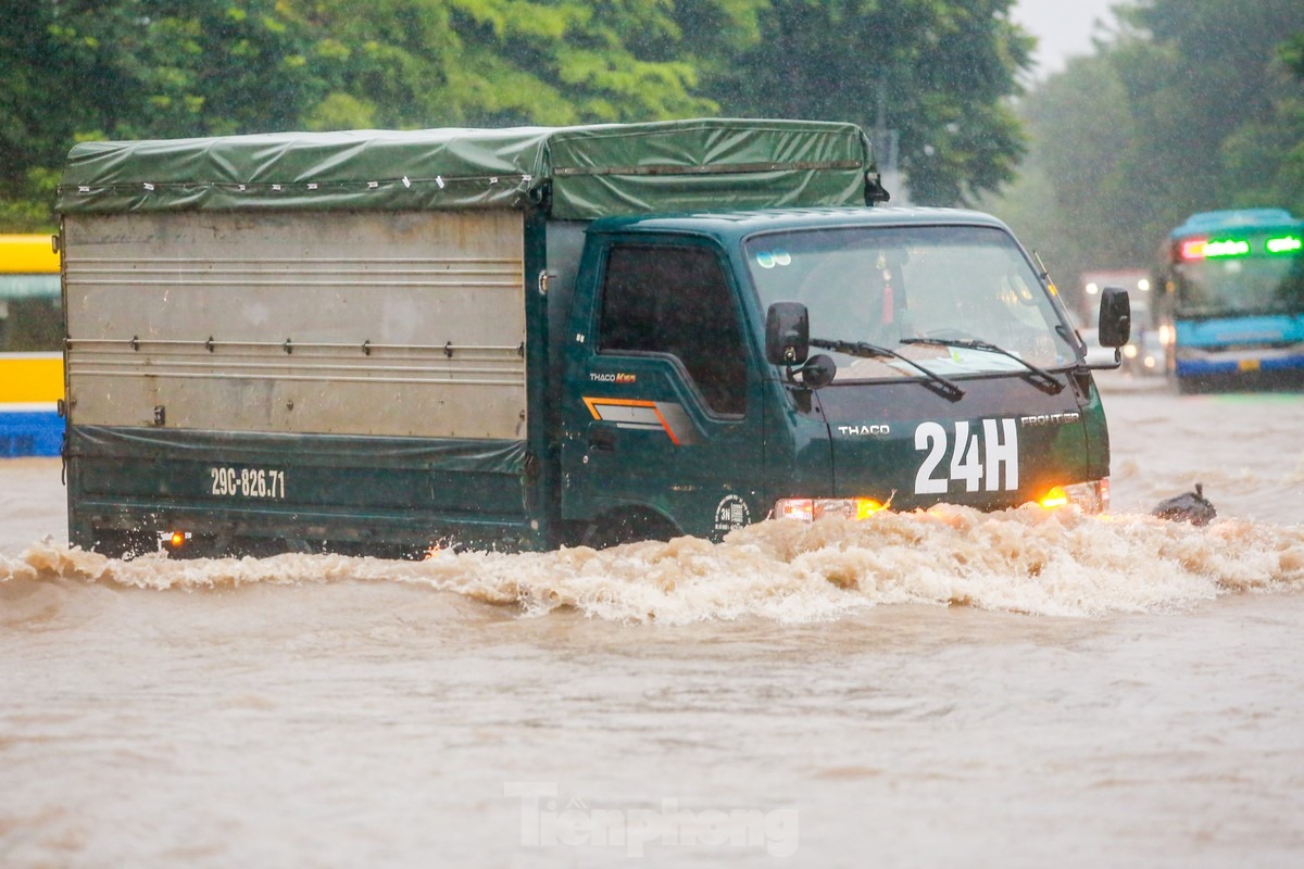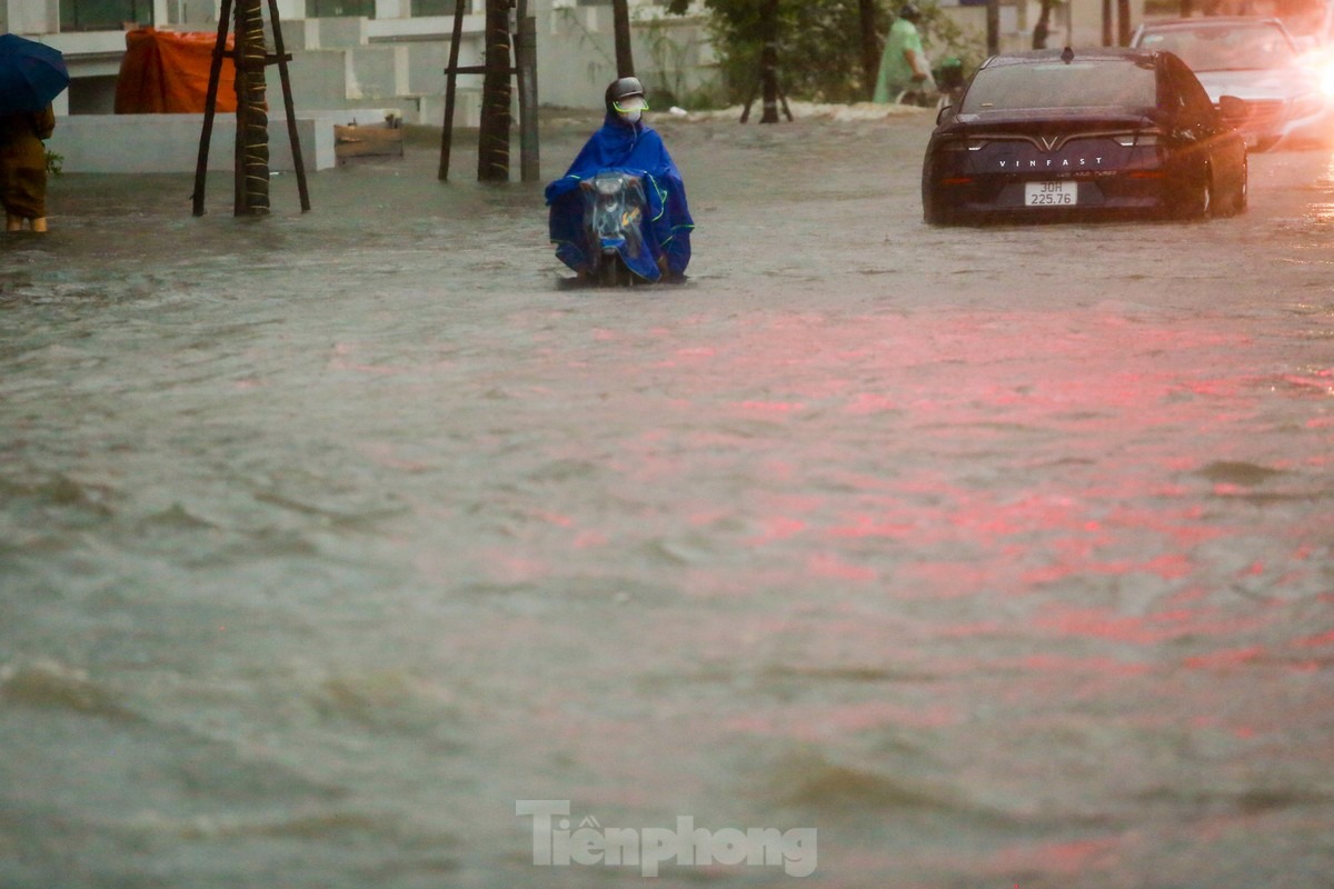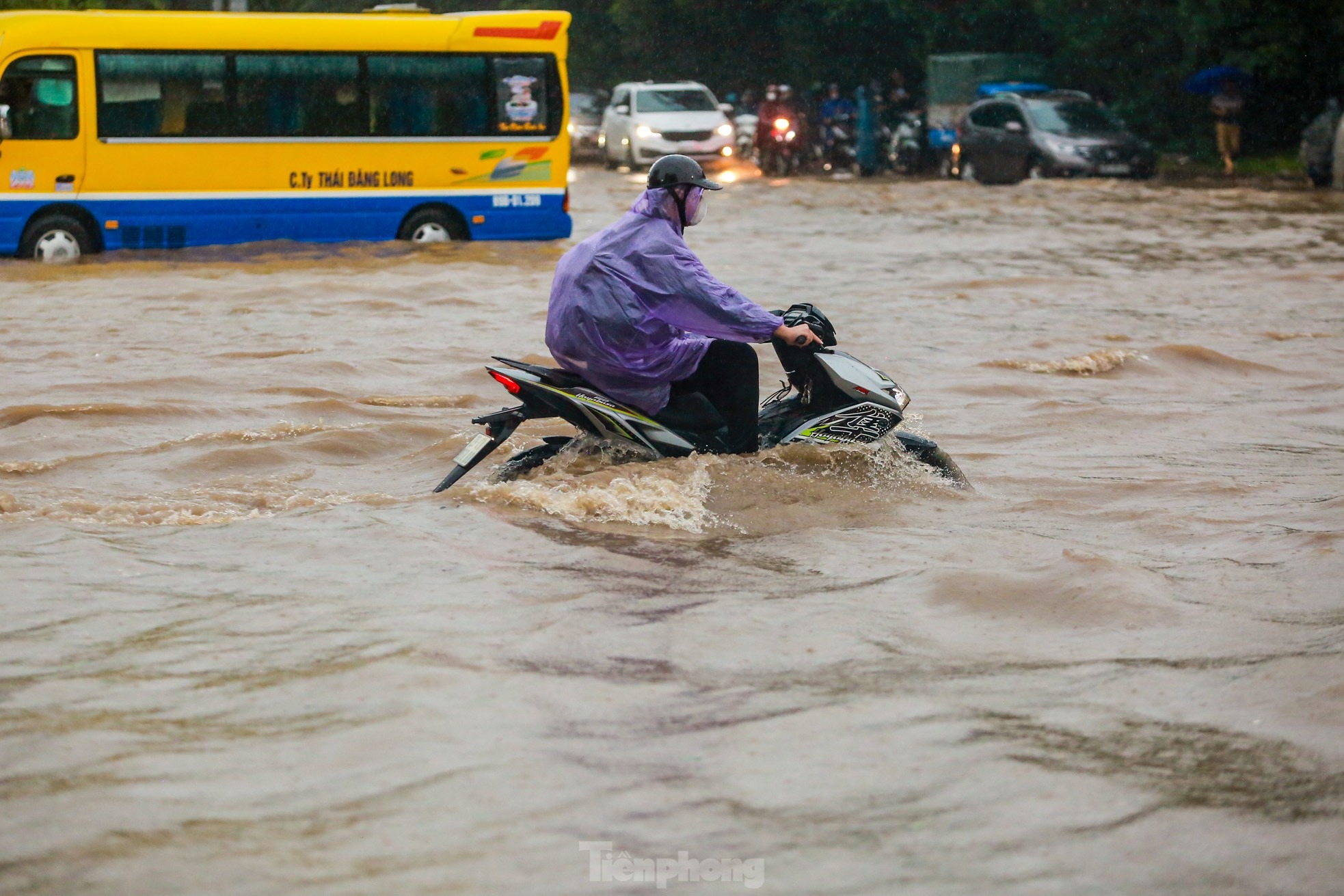 Do ảnh hưởng của hoàn lưu cơn bão số 2 gây mưa lớn kéo dài nhiều giờ khiến nhiều tuyến đường ở Hà Nội ngập trong nước. Thậm chí có nơi ngập sâu cả mét khiến nhiều phương tiện không thể vượt qua, chết máy hàng loạt khi lao vào biển nước.