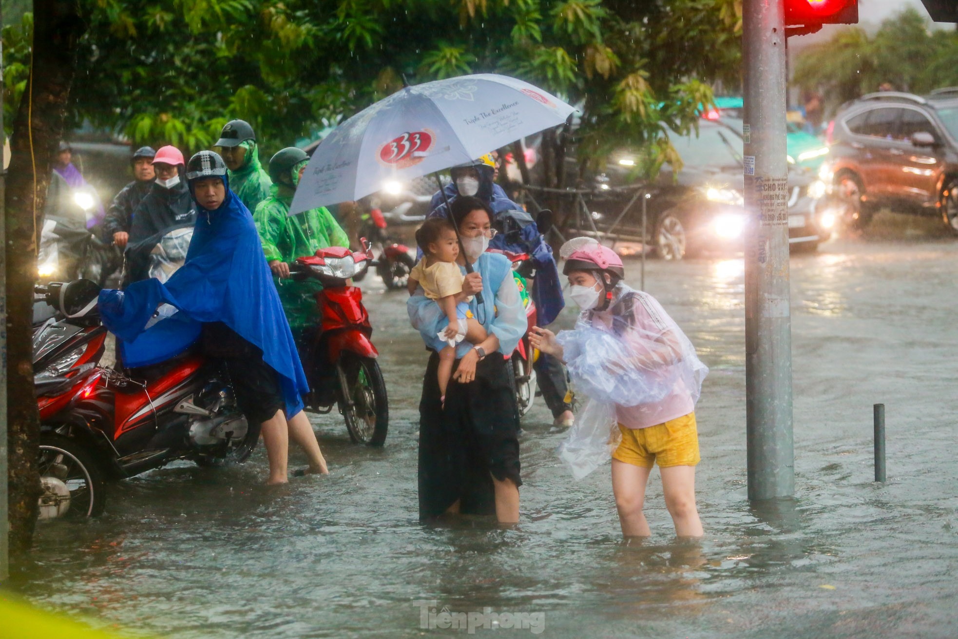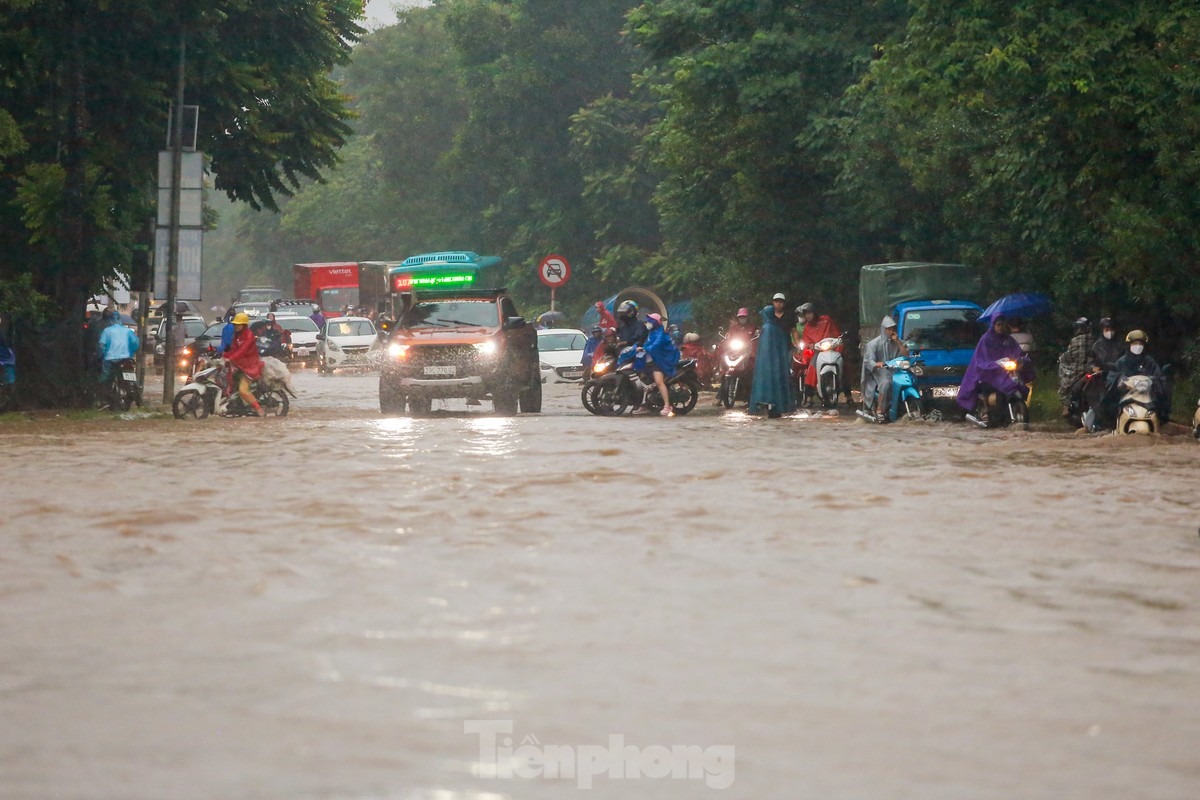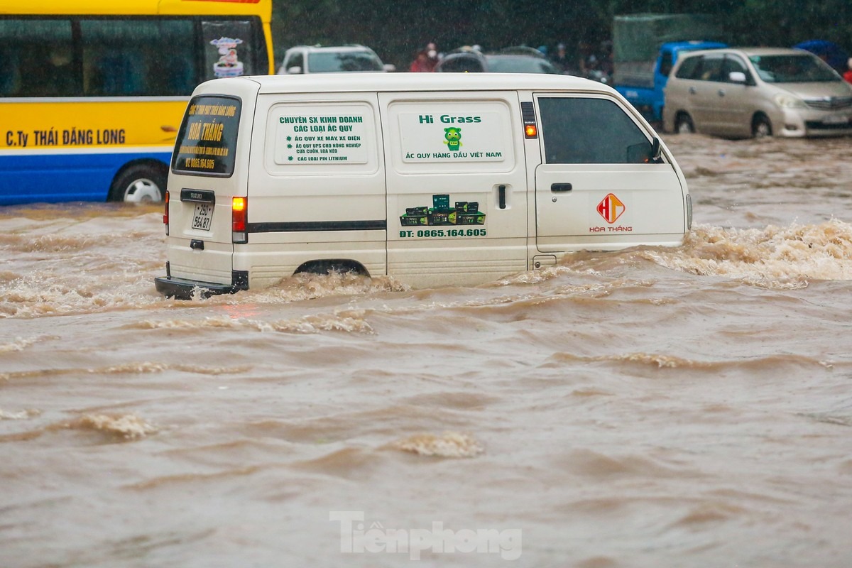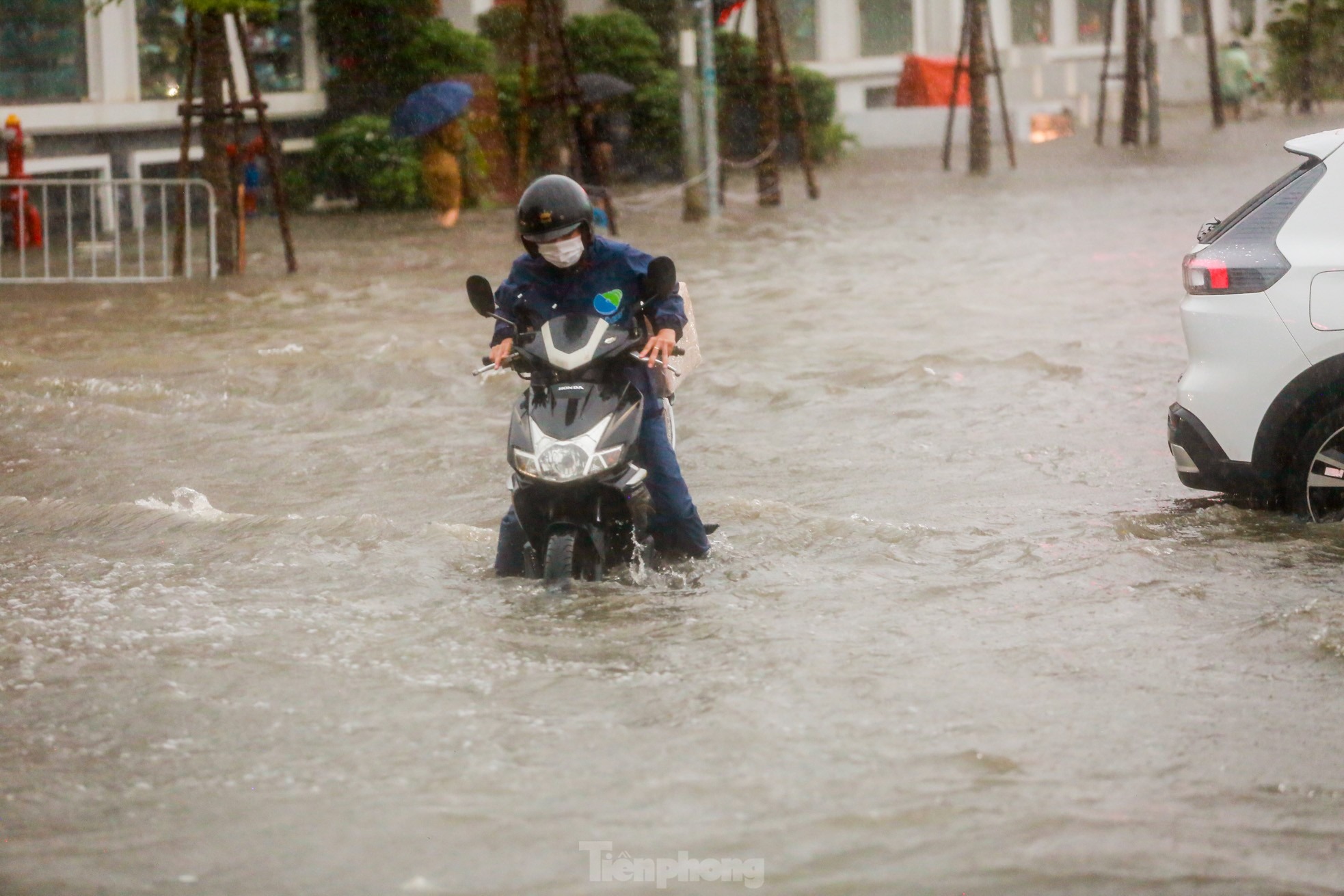 Do ảnh hưởng của hoàn lưu cơn bão số 2 gây mưa lớn kéo dài nhiều giờ khiến nhiều tuyến đường ở Hà Nội ngập trong nước. Thậm chí có nơi ngập sâu cả mét khiến nhiều phương tiện không thể vượt qua, chết máy hàng loạt khi lao vào biển nước.
