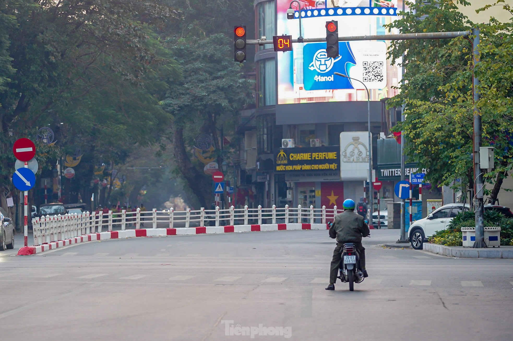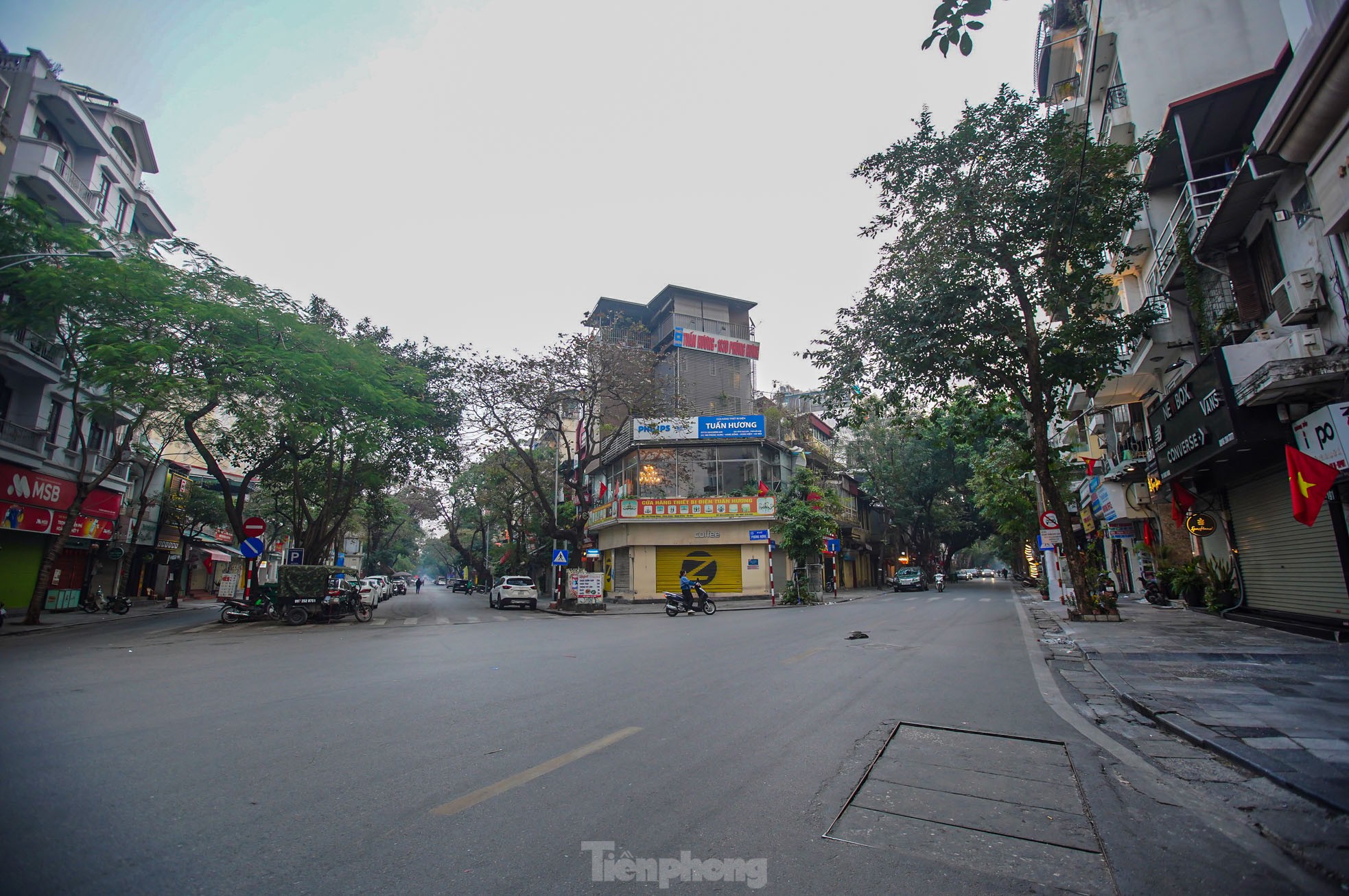 Sáng mùng 1 Tết, đường phố Hà Nội không còn cảnh ùn tắc, tiếng còi xe... thay vào đó là sự tĩnh lặng, bình yên đến nao lòng.