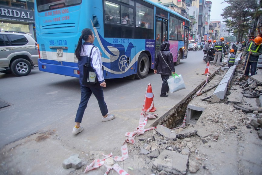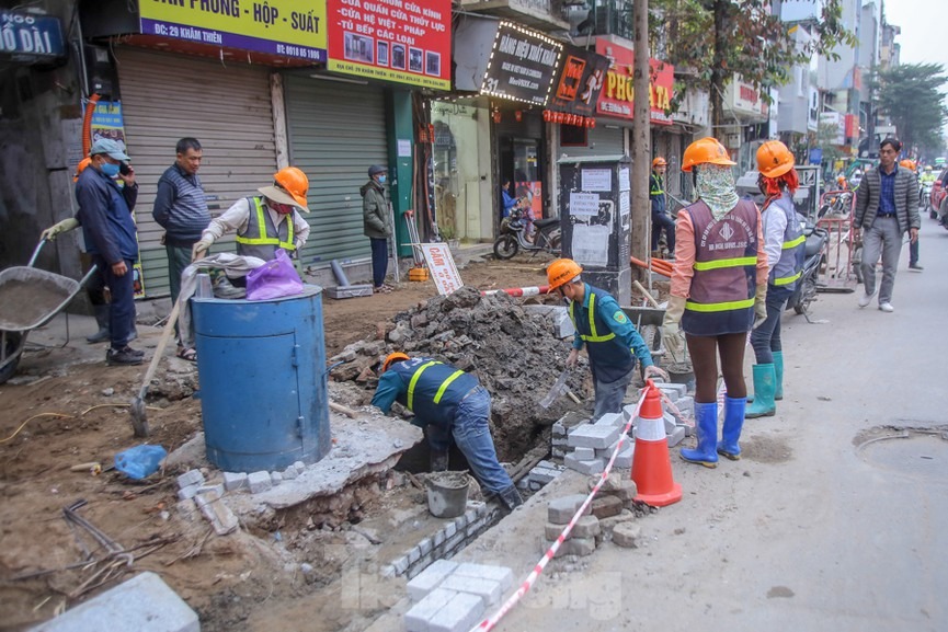 06/01/2021 22:45Phố 'siêu tắc' Khâm Thiên lại đào xới, lát hè dịp cận Tết