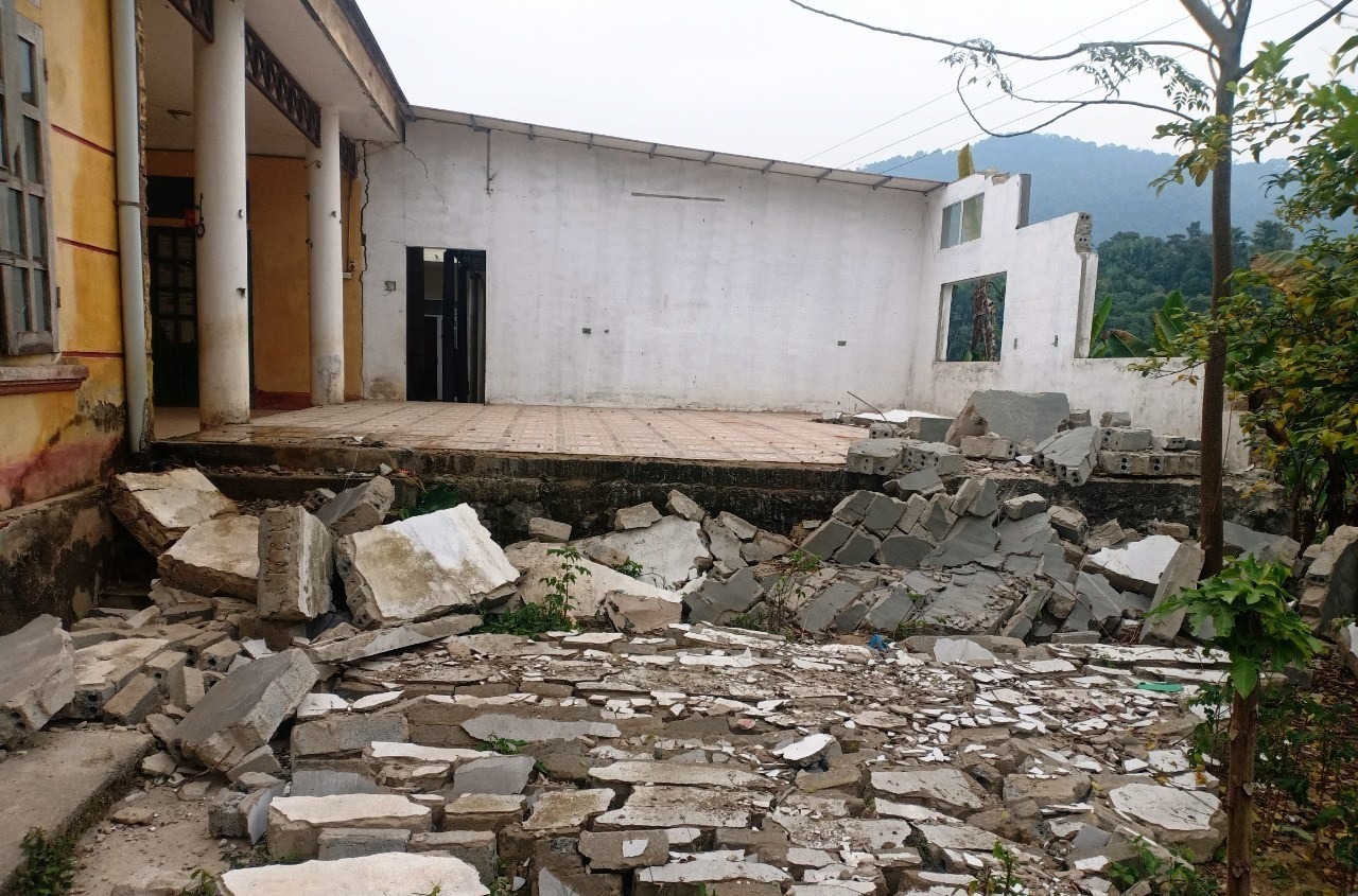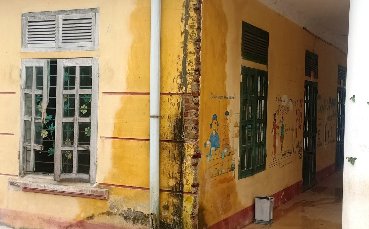 Trường Mầm non xã Điền Hạ, huyện Bá Thước (Thanh Hóa) bị sụt lún hơn 2 tháng qua khiến hàng trăm trẻ phải đi học nhờ.