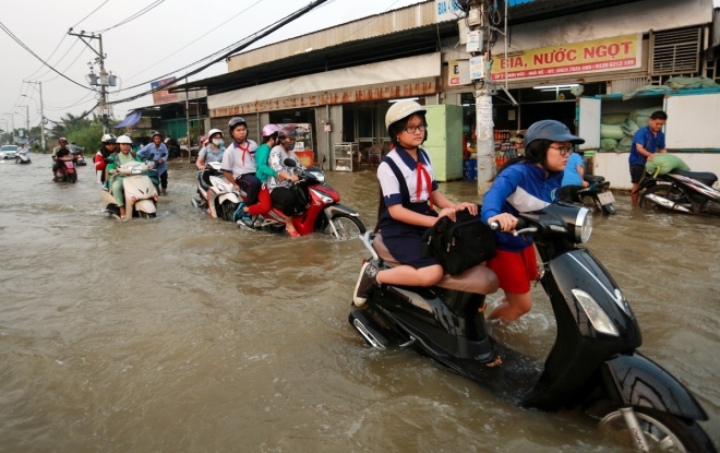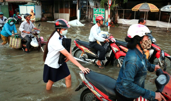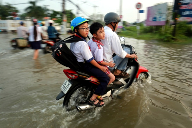 16/11/2016 18:19Phụ huynh Sài Gòn bì bõm đưa con đến trường