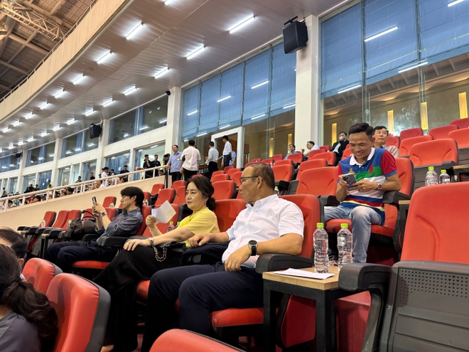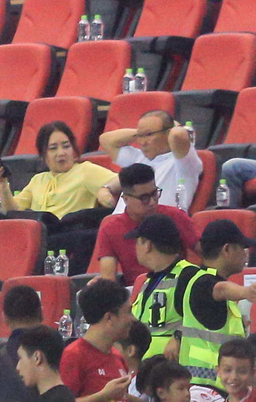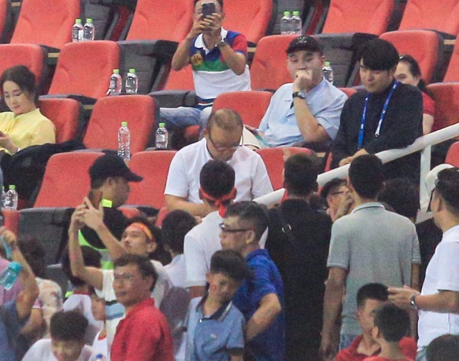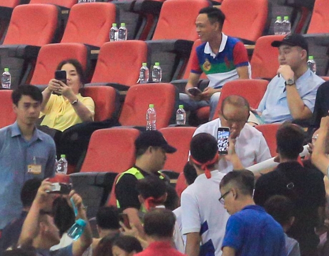 | HLV Park Hang-seo được người hâm mộ săn đón trên sân Mỹ Đình, bà xã nhanh tay lấy điện thoại ghi lại khoảnh khắc |