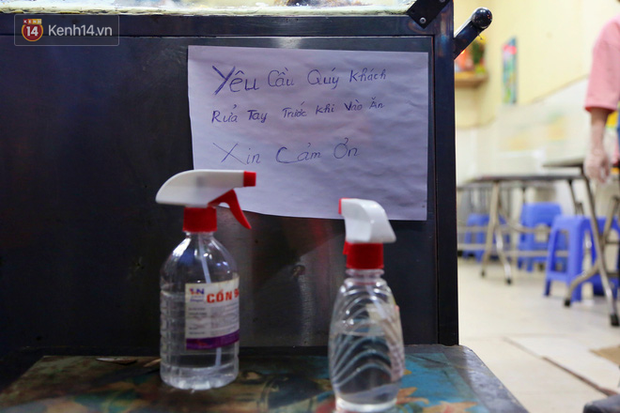 Quán cơm này cũng chuẩn bị dung dịch sát khuẩn để mỗi khách hàng sẽ được sát khuẩn tay trước khi vào trong quán ăn. Khi khách ăn xong, nhân viên quán và ông Sơn sẽ tiến hành sát khuẩn, lau rửa những tấm chắn và bàn ăn để đảm bảo an toàn nhất có thể cho khách hàng.