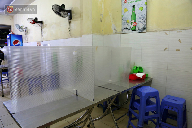 Nhằm đảm bảo an toàn cho người thân và khách hàng trong dịch COVID-19, một quán cơm tại phố Phủ Doãn (phường Hàng Trống, quận Hoàn Kiếm, Hà Nội) đã tiến hành lắp đặt hệ thống tấm chắn giọt bắn.