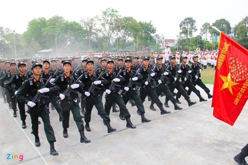 | Chiều 21/4, 31 khối thuộc các lực lượng vũ trang, dân quân tự vệ... đã hợp duyệt binh, chuẩn bị cho lễ mít tinh chào mừng 40 năm giải phóng miền Nam 30/4. Thượng tướng Nguyễn Thành Cung - Thứ trưởng Bộ Quốc phòng đến trường Quân sự Quân khu 7 kiểm tra. |