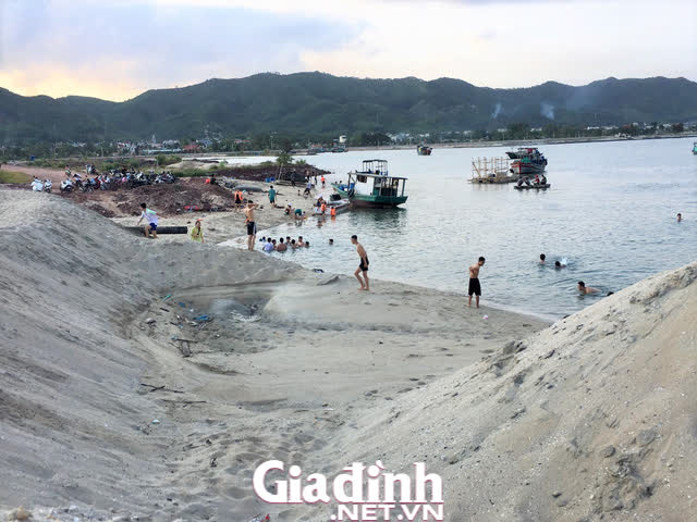 Theo ghi nhận của phóng viên Báo GĐ&XH vào chiều 17/5, dù có biển cảnh báo dựng ngay đó "Cảnh báo, khu vực nguy hiểm, cấm tắm" nhưng hàng chục người dân vẫn vô tư kéo nhau ra tắm, không phao bơi hay bất kì thiết bị bảo hộ nào khi xuống nước..., thậm chí có trẻ còn mạo hiểm bơi ra xa bờ.
