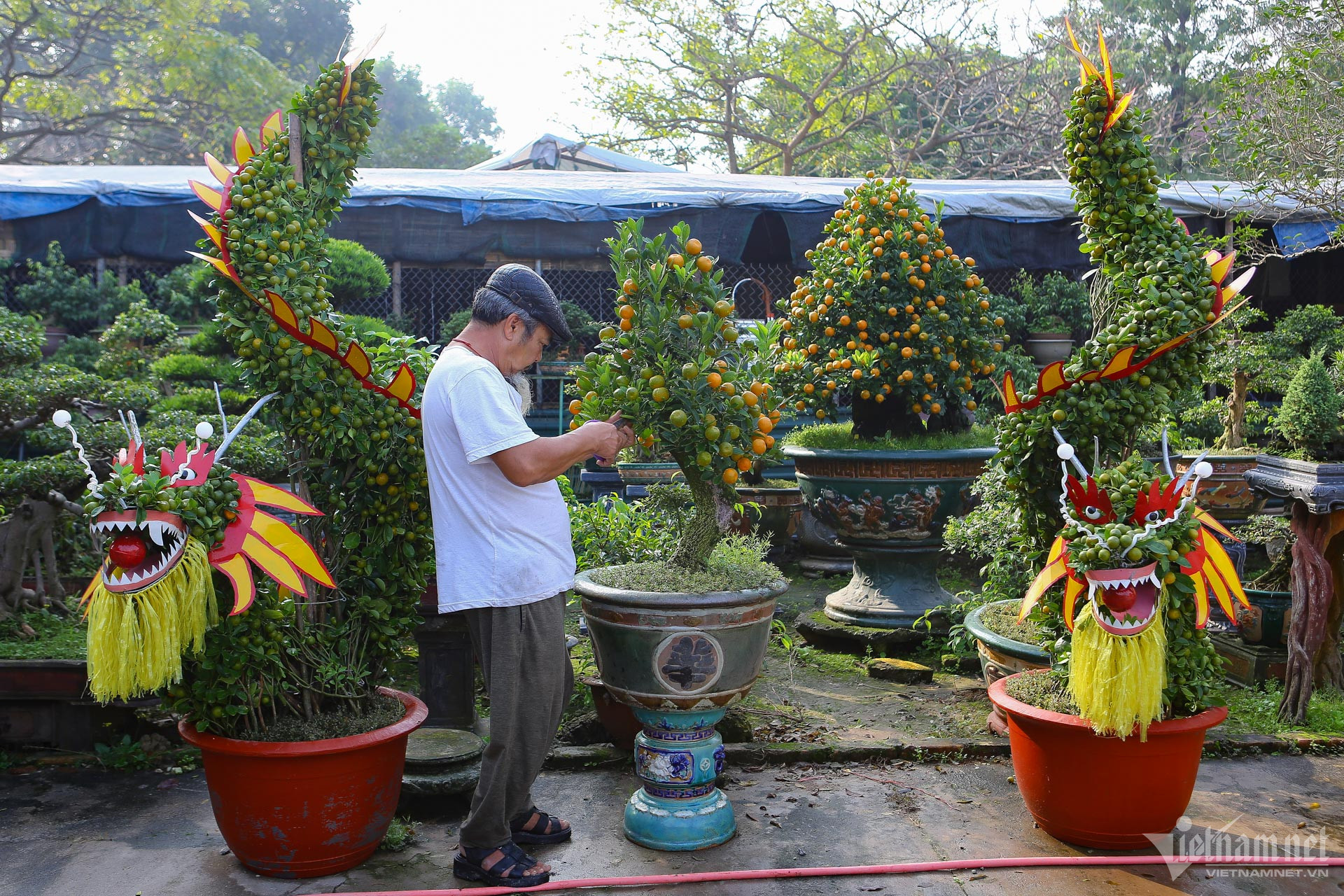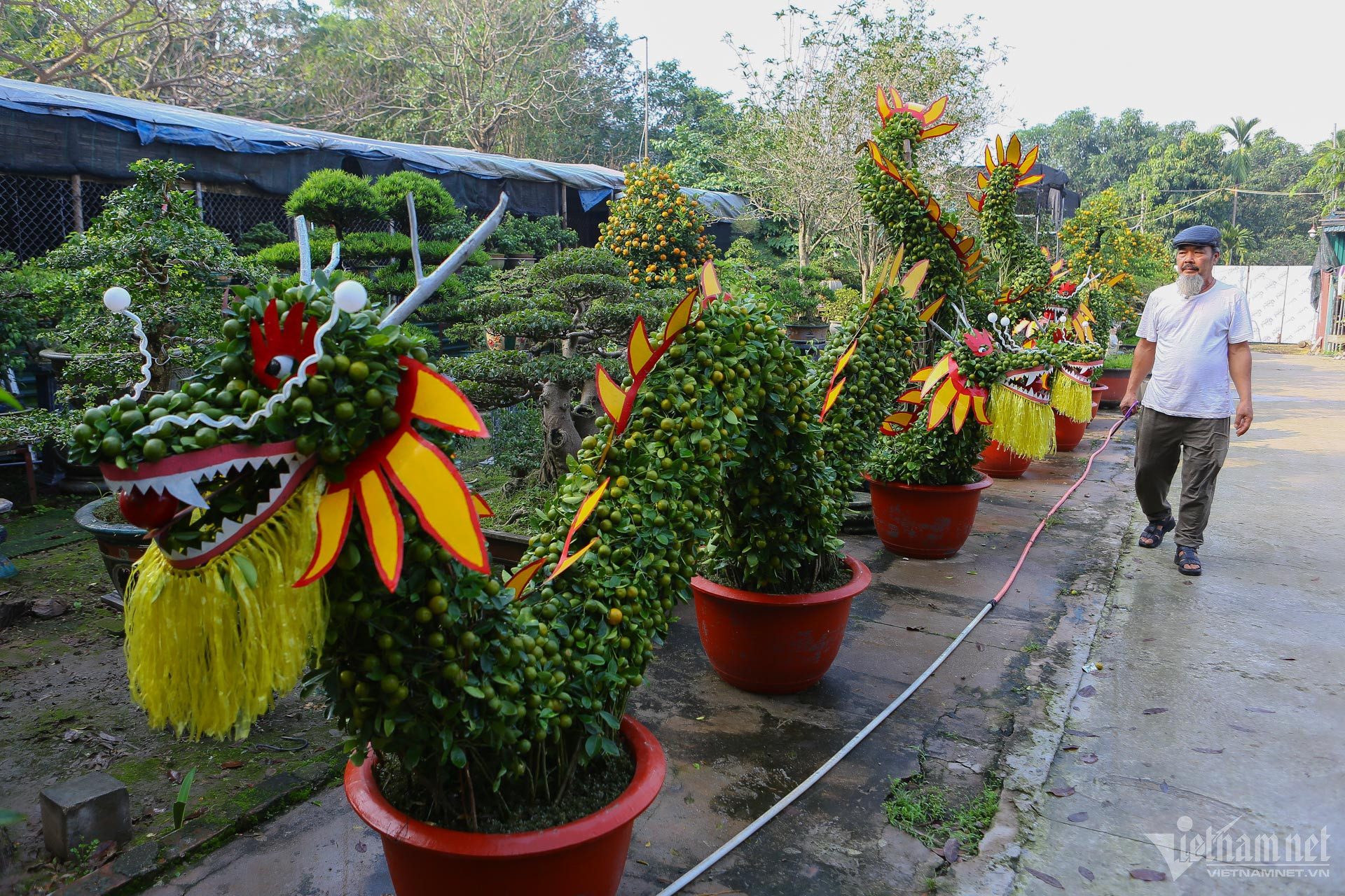 Để phục vụ nhu cầu trang trí Tết Giáp Thìn 2024, một nhà vườn ở Hà Nội đã tạo hình linh vật rồng độc đáo bằng các cây quất cảnh, giá thành lên tới 100 triệu đồng một sản phẩm.