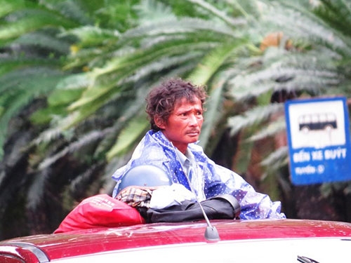Ngồi trên nóc xe bán tải giữa đoạn đường ngập lụt từ đêm qua, người đàn ông này đang ngóng xe cứu hộ. Đến trưa 27/7, mưa đã tạnh, nhưng có đoạn vẫn ngập sâu khoảng một mét. |