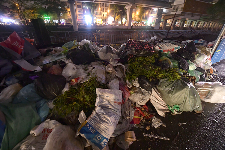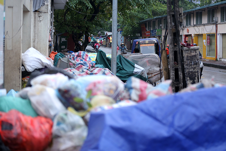 Hình ảnh rác thải bị ùn ứ do phóng viên Báo Tin tức ghi nhận trên đường phố Hà Nội: