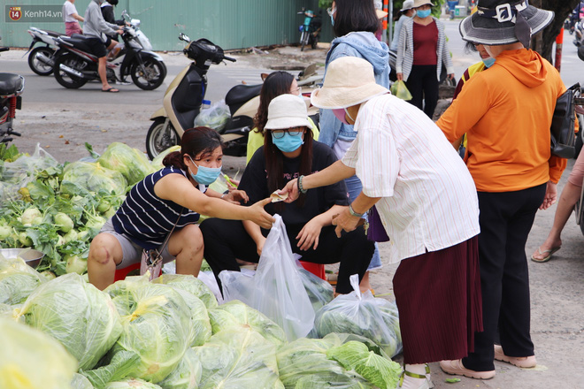 Mỗi bịch bắp cải, su hào được bán cho người dân với giá 50 ngàn đồng, từ 6 - 7 ký. Ngoài địa điểm tại đường Bình Quới, nhóm của chị Trang còn hỗ trợ bán ở Lê Quang Định. Người dân đến mua không cần trả giá, ai nấy đều vui vẻ xách 1 - 2 bịch rau củ, thậm chí có người mua cả chục bịch để giúp đỡ bà con Hải Dương.