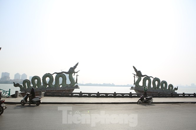 Buổi sáng tại Hà Nội nhiệt độ khoảng 14 độ C, theo ghi nhận của phóng viên Tiền Phong vào giờ cao điểm sáng sớm, đường phố xung quanh Hồ Tây vắng vẻ hơn thường ngày.