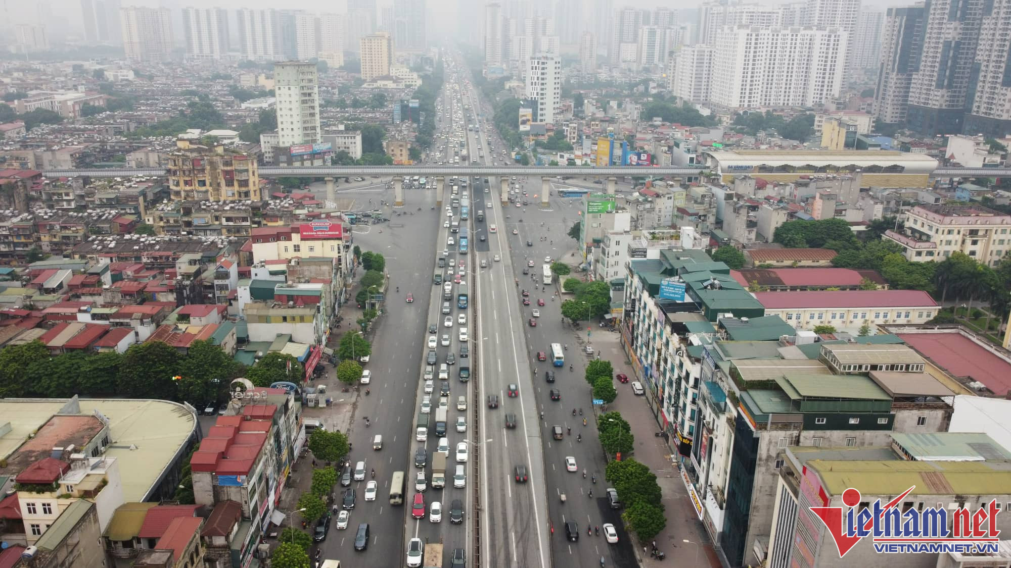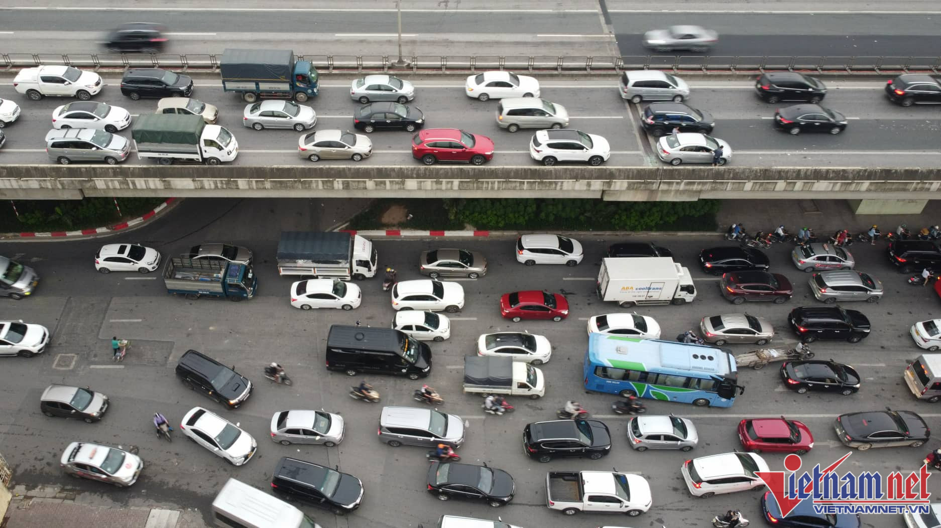 Từ 6h30 sáng 1/9, lưu lượng phương tiện dồn về đường Vành đai 3 trên cao (đoạn từ Mai Dịch đến qua hồ Linh Đàm) tăng cao. Dòng phương tiện đã phải xếp hàng 3, nhích từng mét để di chuyển trên đường này. Ước tính đoạn ùn tắc đã kéo dài gần 8km.