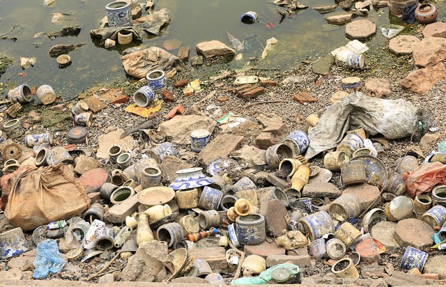 Sau khi tiến hành rút nước trong hồ Nghĩa Tân – Công viên Nghĩa Đô để cải tạo, người dân không khỏi bất ngờ khi dưới đáy hồ xuất hiện hàng nghìn chiếc bát hương, đồ thờ cúng chất thành đống.
