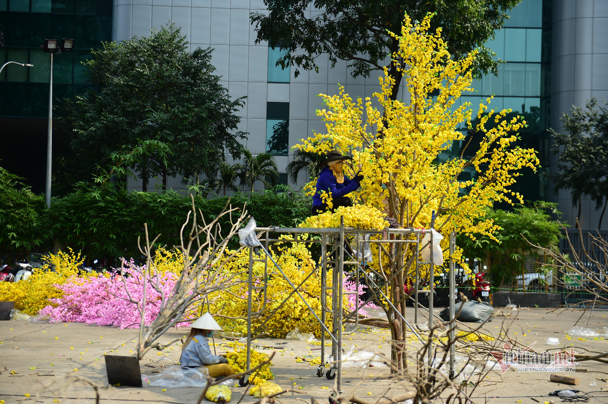 Người dân Sài Gòn tất bật chuẩn bị mai, đào, câu đối đỏ... tân trang cảnh quan để chuẩn bị đón Tết Nguyên đán Nhâm Dần 2022 khi dịch bệnh có xu hướng giảm.