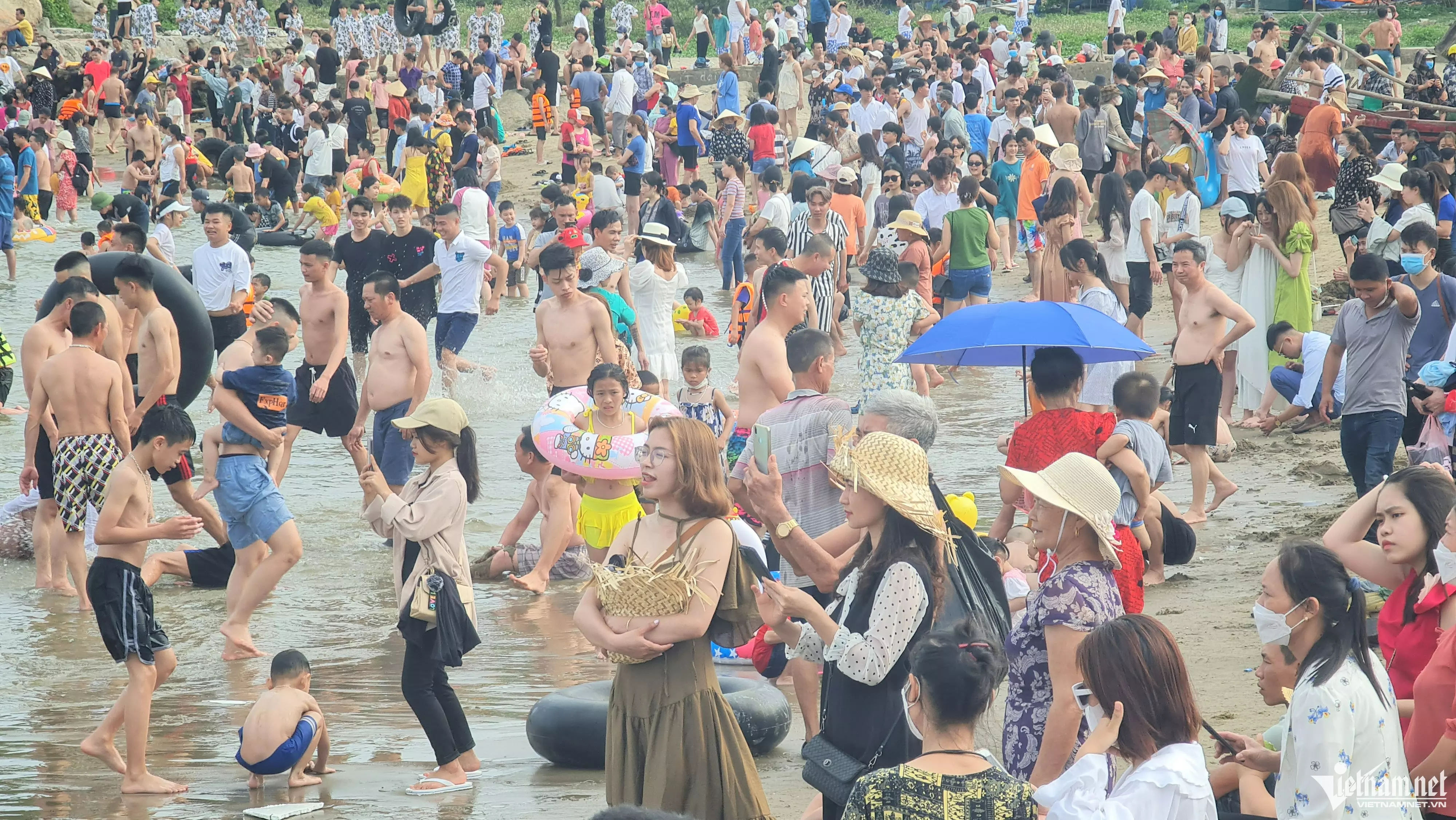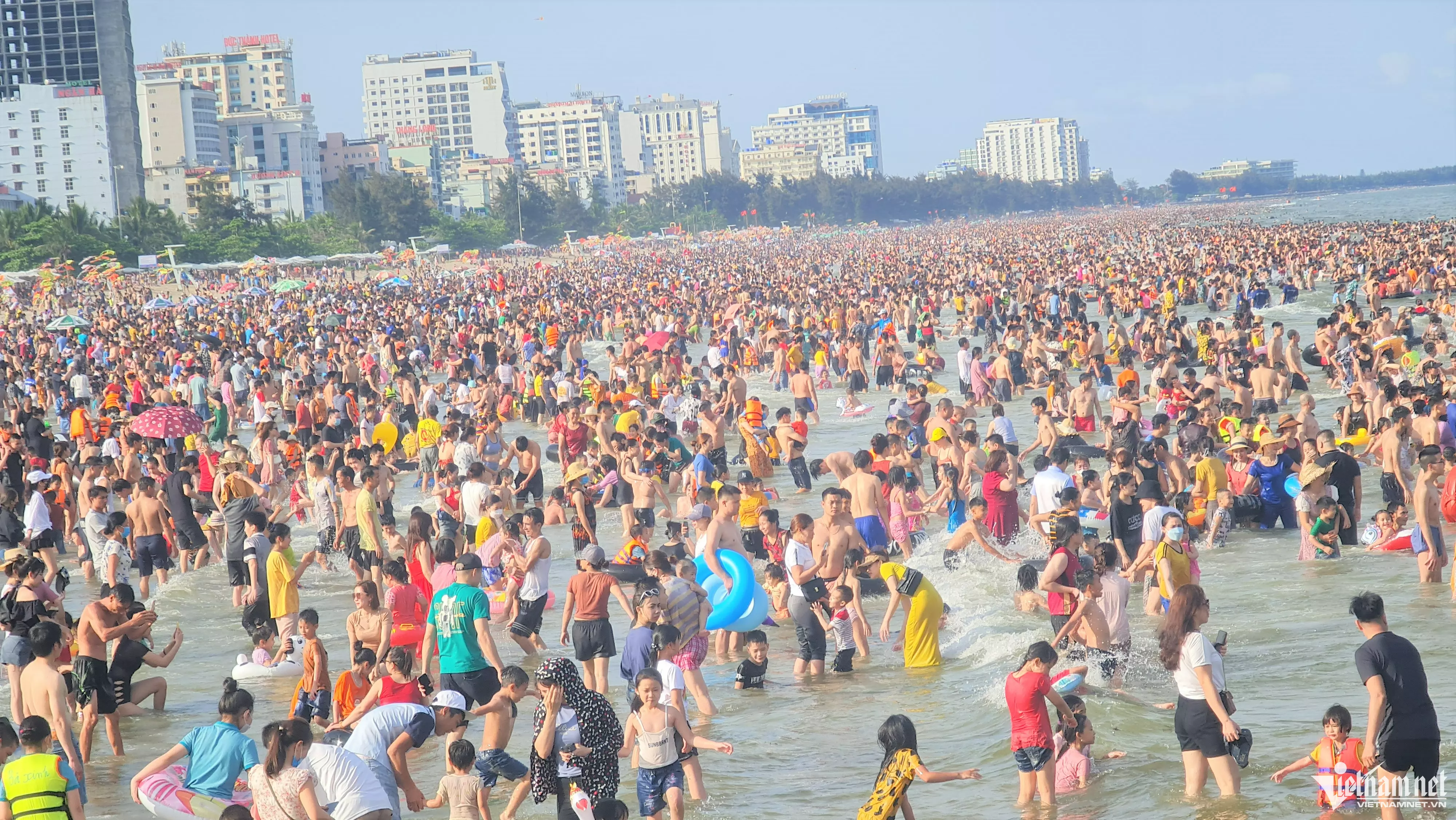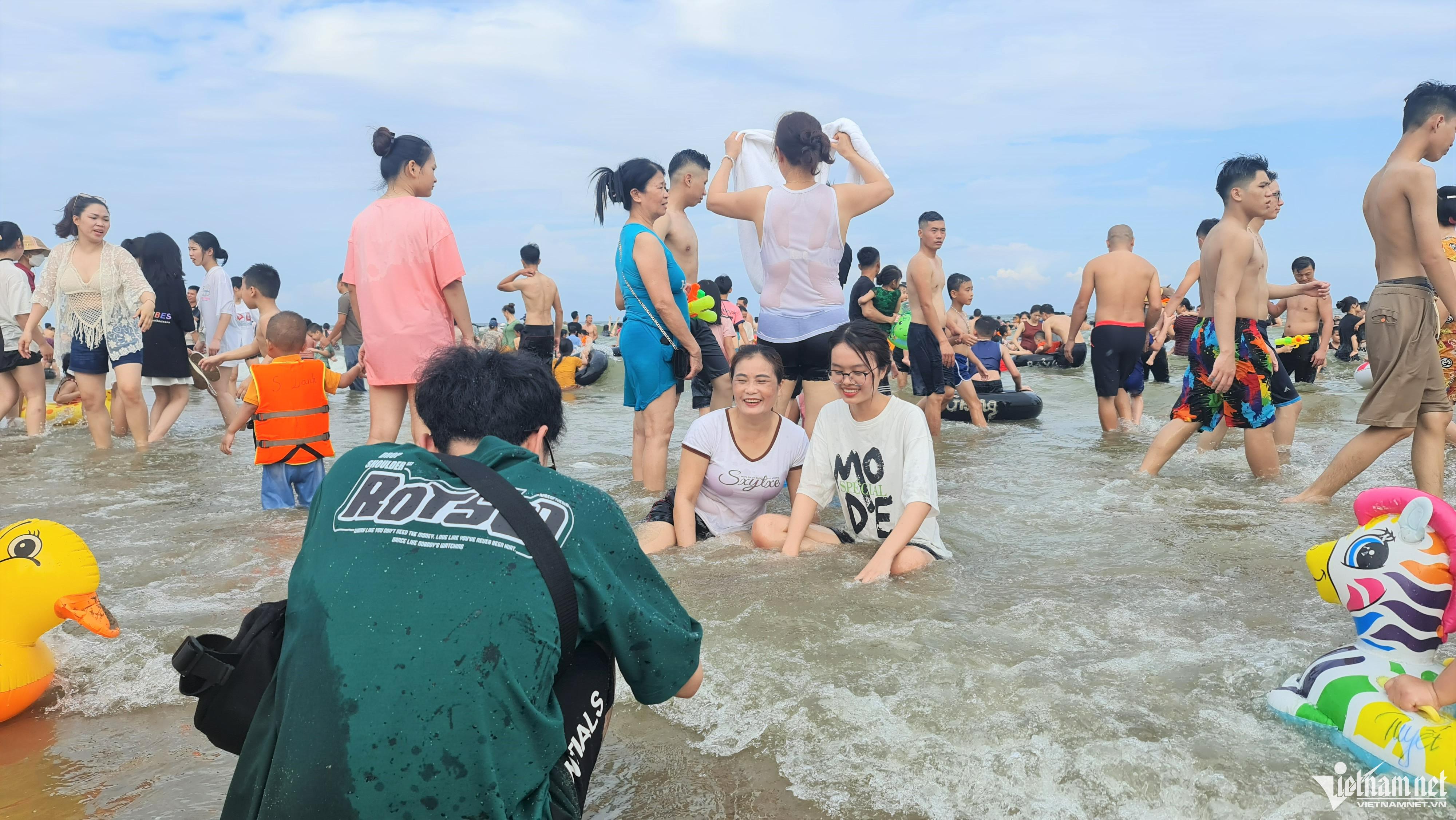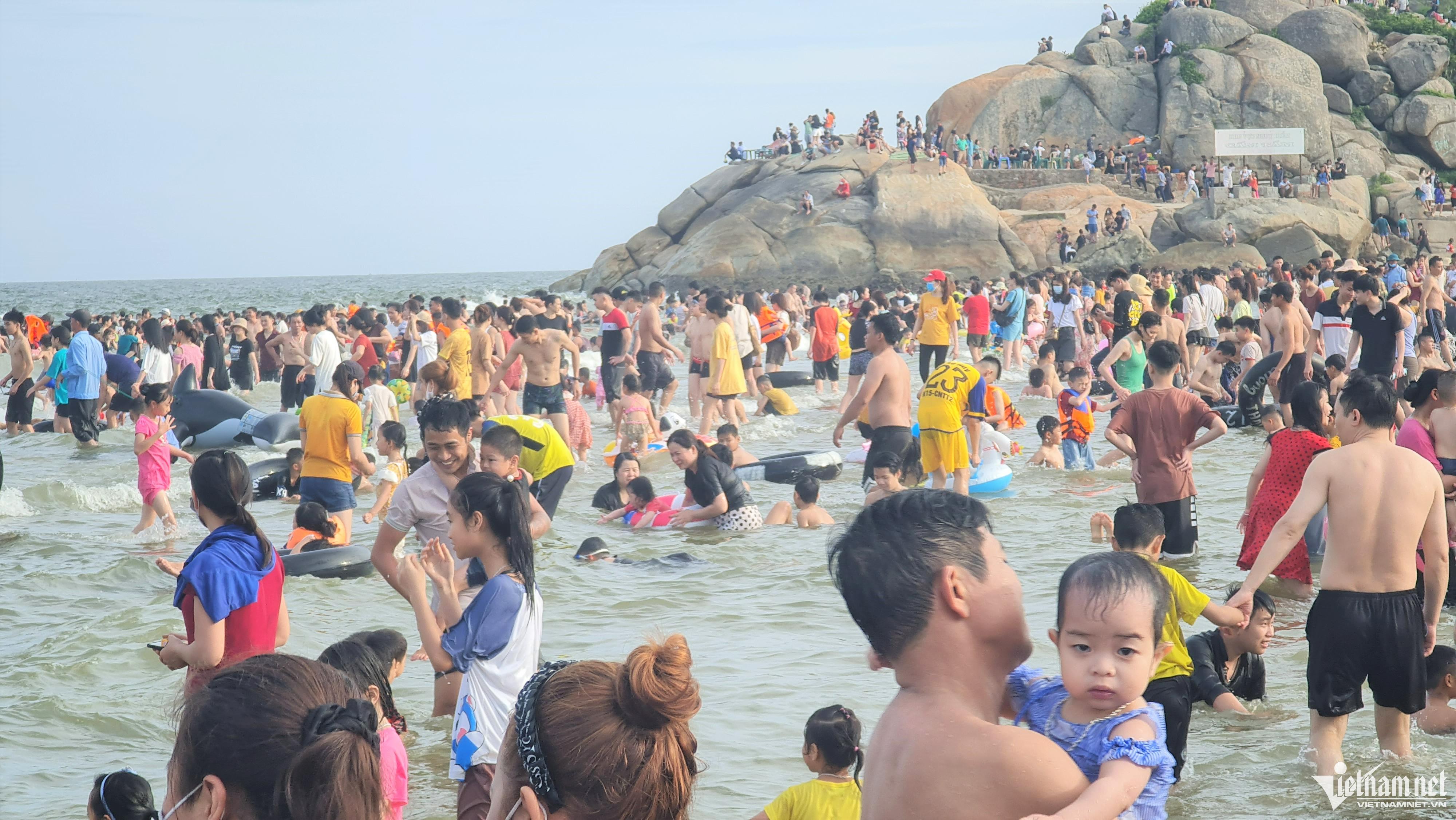 Một số hình ảnh biển Sầm Sơn ken cứng người ngày nghỉ lễ đầu tiên.