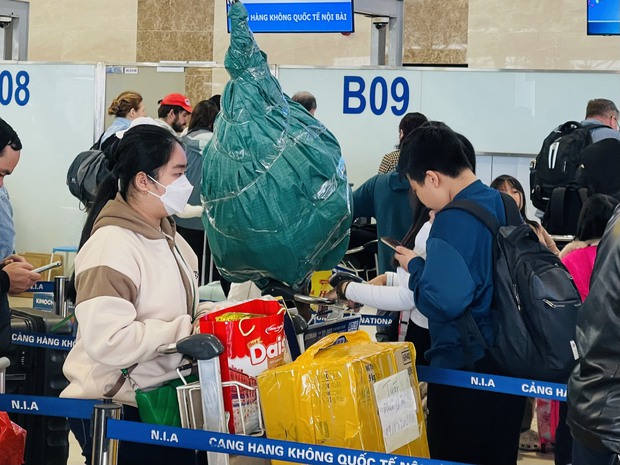 Hôm nay (7/2, tức 28 Tết) dự kiến sân bay Nội Bài (Hà Nội) sẽ phục vụ 605 lượt chuyến bay/ngày và 98,5 ngàn lượt hành khách/ngày. Cao điểm sau Tết dự kiến là ngày 15/2 (tức ngày 6/1 Âm lịch) với 608 lượt chuyến bay/ngày và 105 ngàn lượt hành khách/ngày.