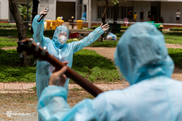 Ngày 29/7, nhóm nghệ sĩ TP.HCM đã đến Bệnh viện dã chiến thu dung số 4 nhằm mang đến những động viên tinh thần cho các bệnh nhân đang điều trị, cũng như y bác sĩ đang làm việc tại nơi đây.