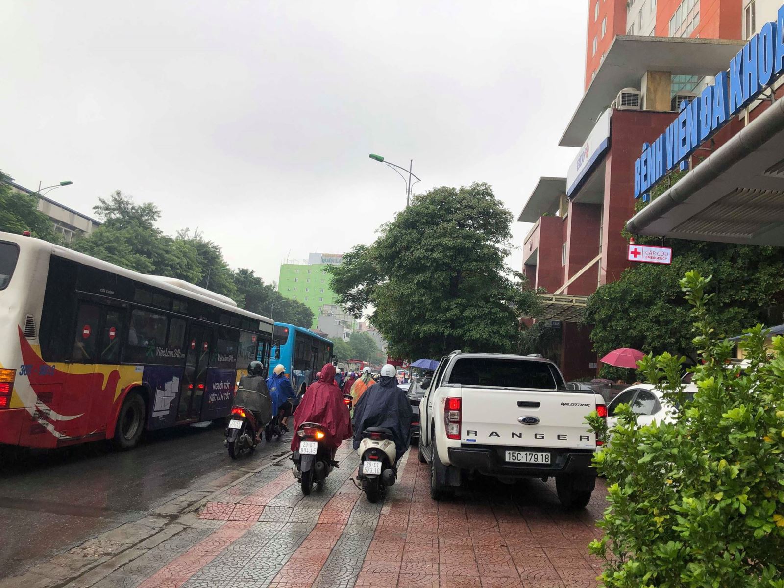 Đến 9 giờ sáng, tuyến đường ùn tắc dài gần 2km, các phương tiện lưu thông rất chậm. Xe máy và xe thô sơ phải leo lên vỉa hè để di chuyển, trong khi đó dưới lòng đường kẹt cứng xe ô tô, chiếm hết phần đường của các phương tiện khác.