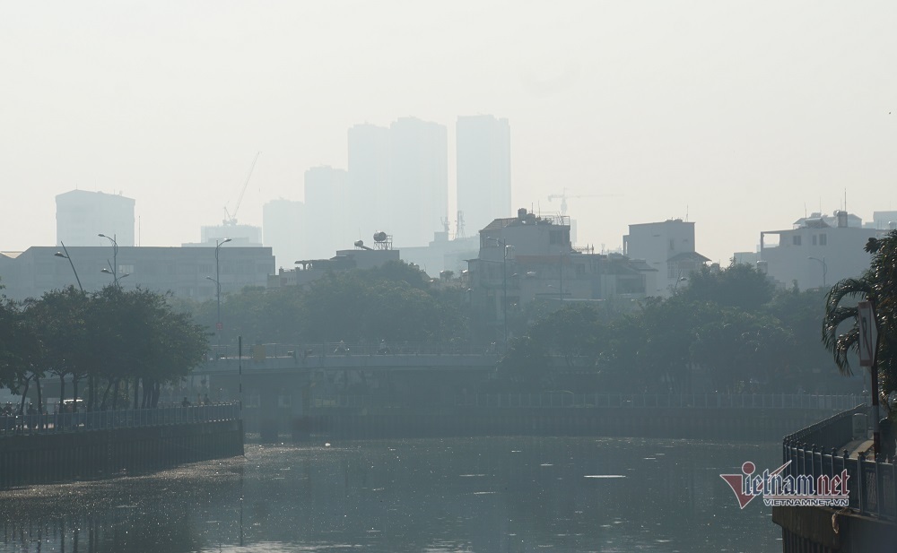 Khu vực trung tâm nơi có nhiều nhà cao tầng, các công viên, khu vực sông và kênh rạch, lớp sương mù dày đặc hơn.