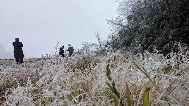Chìm sâu trong khối không khí lạnh cường độ mạnh, nhiệt độ tại các khu vực núi cao phía Bắc còn dưới 5 độ C, nhiều vùng núi đã xuất hiện băng giá.