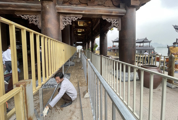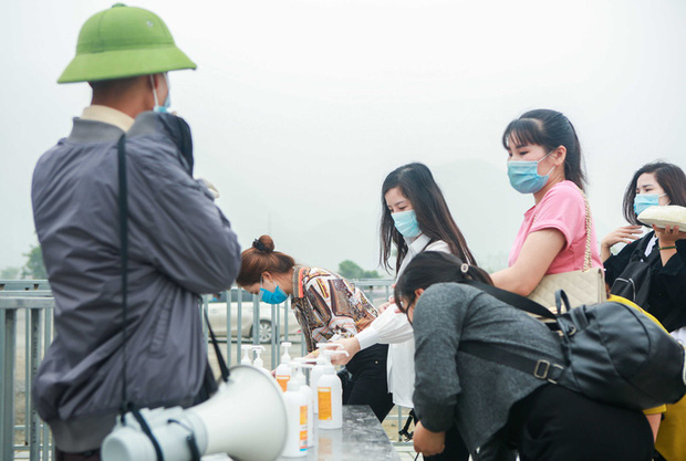 Theo ghi nhận của Báo Người Lao Động ngày 19-3, tại các lối vào nhà chờ xe điện và đi thuyền lên chùa, các nhân viên đã được huy động gấp rút lắp các rào chắn, phân luồng di chuyển. Tại thời điểm ghi nhận cũng đã có một lượng nhỏ du khách thập phương đến vãn cảnh, ban quản lý đã cử nhân viên đứng ngay các điểm lối ra vào phát tờ khai y tế, đồng thời kiểm tra thân nhiệt cho từng người.