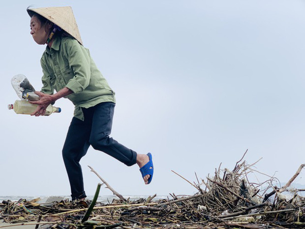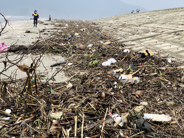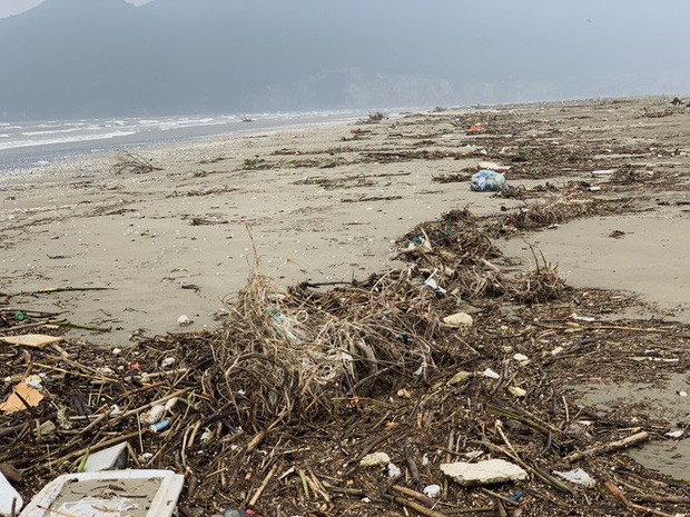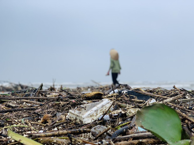 Sau khi lũ rút, khoảng 1km bờ biển ở xã Thạch Kim (huyện Lộc Hà, tỉnh Hà Tĩnh) có hàng tấn rác thải trôi dạt vào, nguy cơ ô nhiễm môi trường.