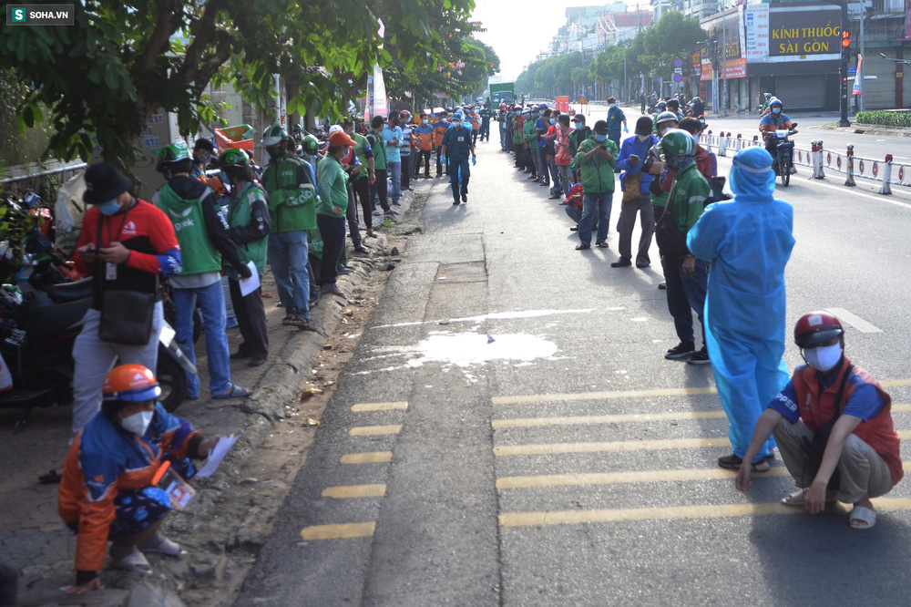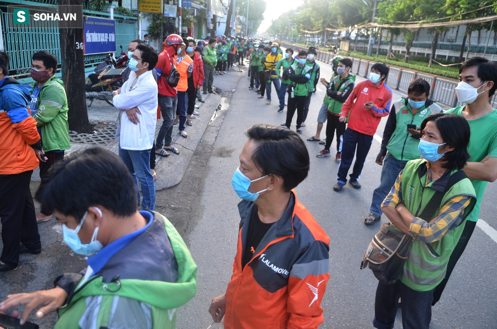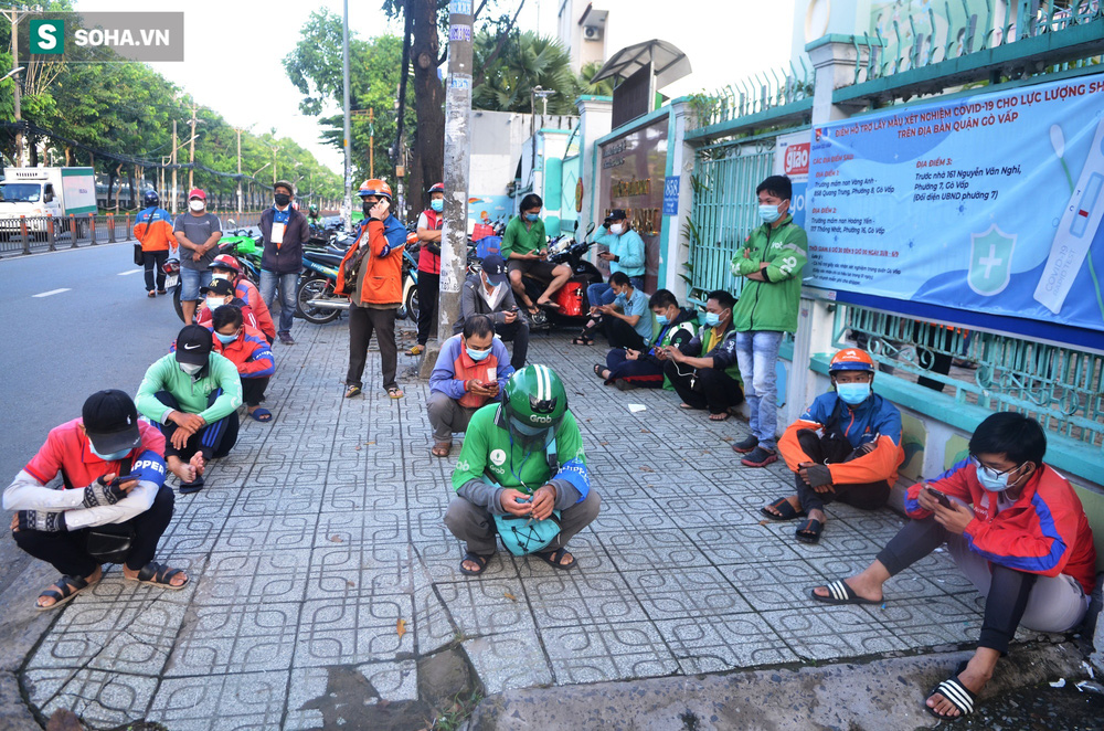 | Shipper tại TPHCM xếp hàng dài từ sáng sớm chờ lấy mẫu xét nghiệm COVID 19 |