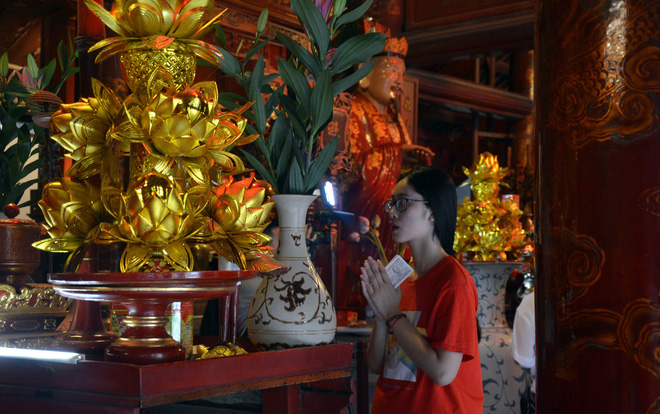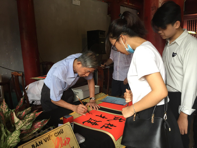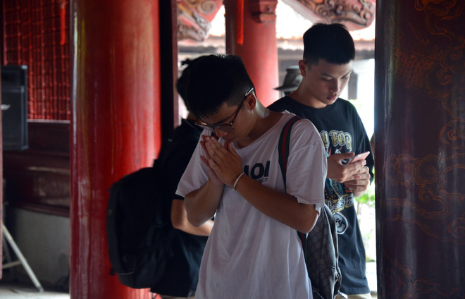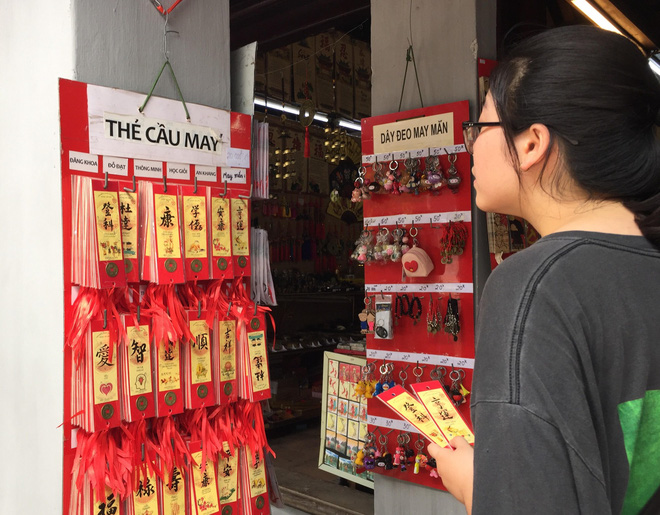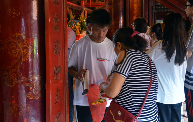 Ngoài việc thắp hương cầu nguyện, phụ huynh và các sĩ tử còn mua thêm bút viết, xin chữ để lấy may.