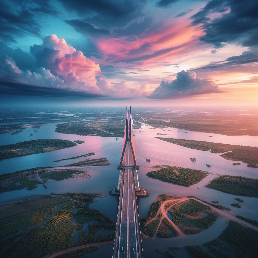 Với một cái nhìn mới mẻ, liệu những hình ảnh "tưởng tượng" về cây cầu Cần Thơ (đang hiện hữu) do Copilot, ứng dụng AI của Microsoft sáng tạo nhìn sẽ như thế nào?