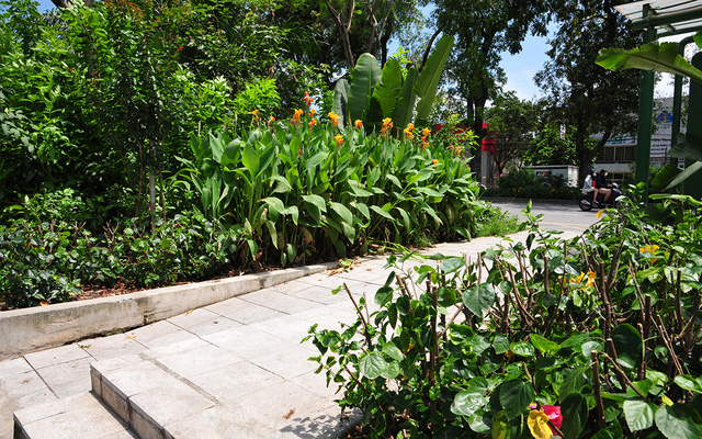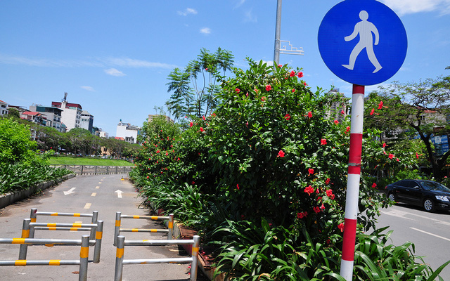 Nằm trên một trong những trục giao thông chính của Hà Nội, tuyến đường đi bộ dài nhất Thủ đô này được chăm sóc khá kỹ lưỡng. Dải phân cách giữa đường đi bộ và đường dành cho xe cơ giới khá rộng, có đoạn rộng đến 8 mét, được trồng nhiều loại cây xanh đô thị, từ những loại cây ra hoa chiều cao thấp để trang trí đến những cây cao làm bóng mát.