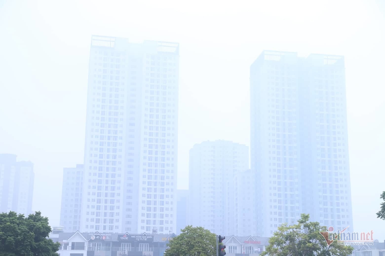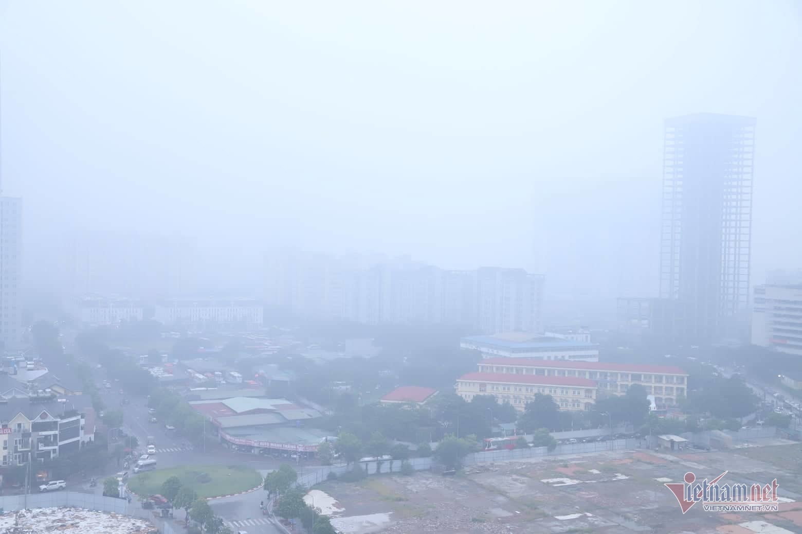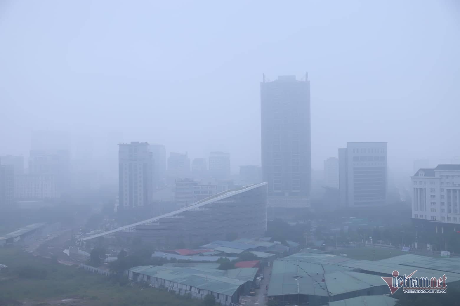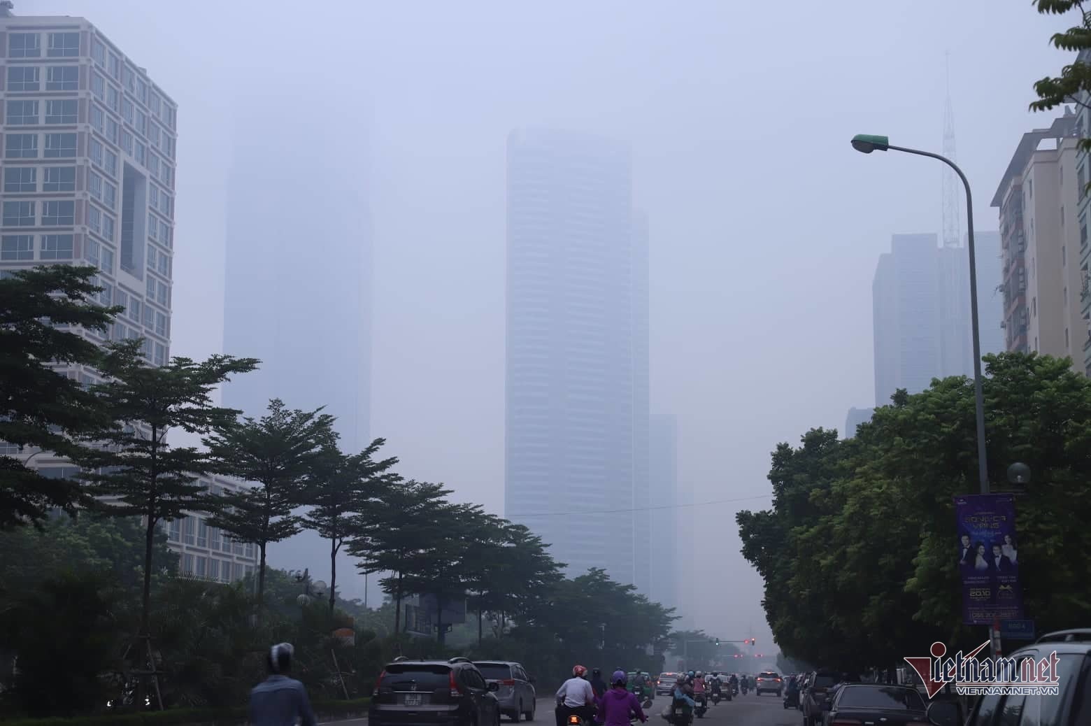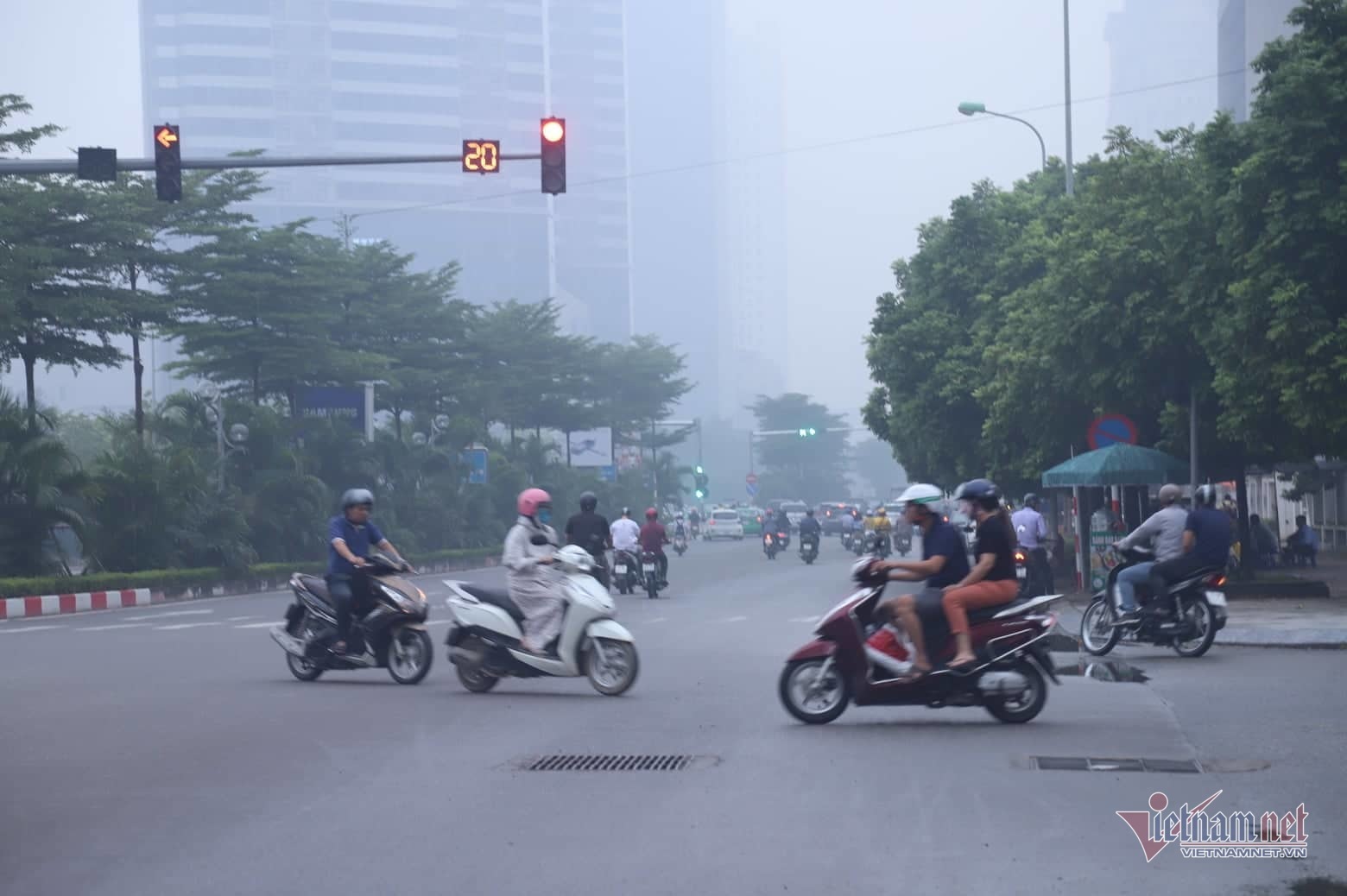 Nhiều tuyến đường, phố ở thủ đô Hà Nội chìm trong sương mù dày đặc khiến tầm nhìn xa bị hạn chế.