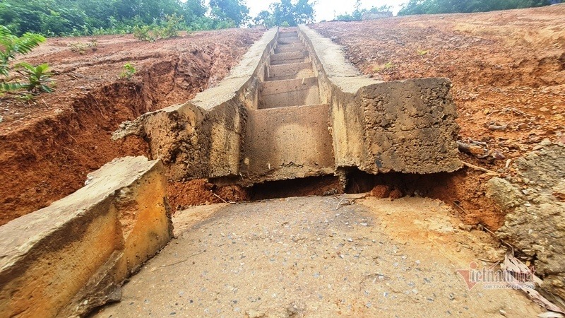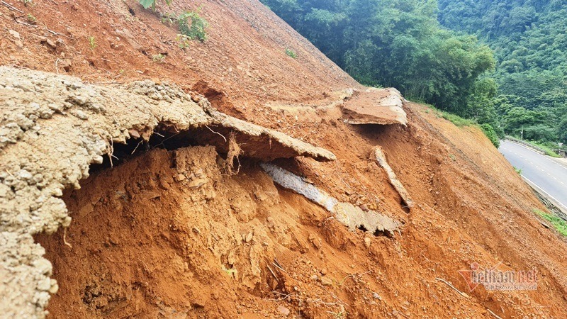 “Vết nứt chỉ mới xuất hiện trong đợt mưa vừa qua và kéo dài cả trăm mét trên sườn núi. Hôm xảy ra hiện tượng nứt là vào ban đêm, chúng tôi nghe thấy những tiếng nổ lớn như kiểu nổ lốp ô tô. Quan sát thì phát hiện những cơ bê tông trên sườn núi nứt, gẫy. Chúng tôi thức cả đêm đề phòng không may sạt lở còn biết đường để chạy”, anh Thắng kể lại.