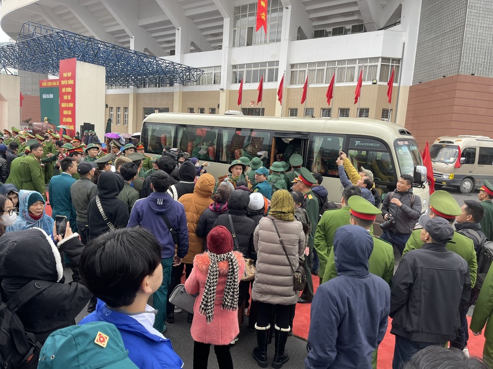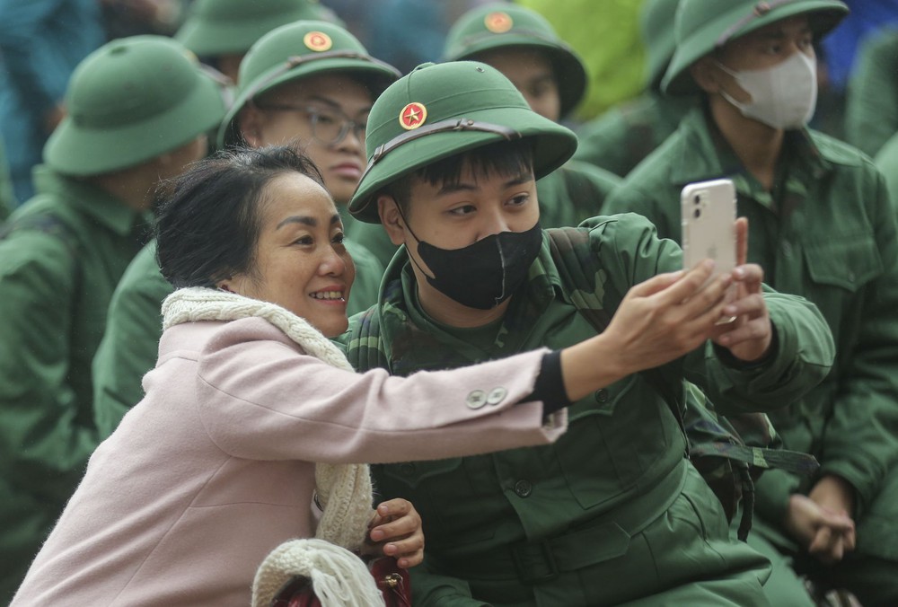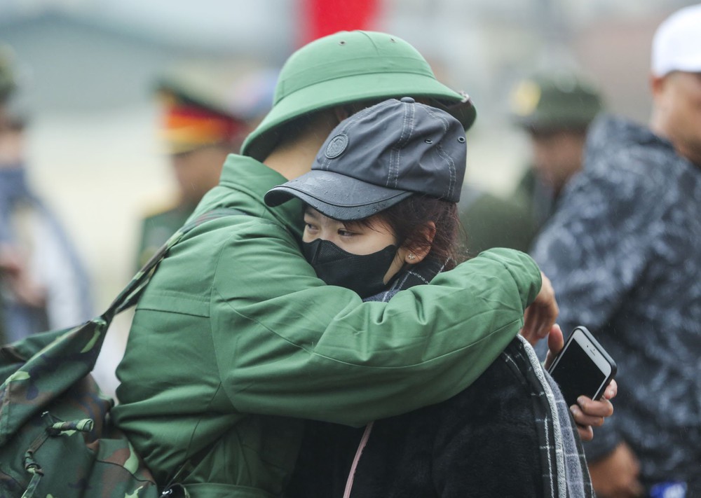 Trong giây phút tiễn các tân binh lên đường nhập ngũ, nhiều người thân, bạn bè của các chiến sĩ đã không giấu được sự xúc động.