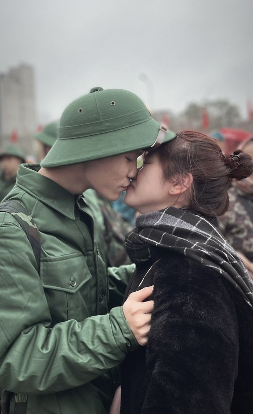 26/02/2024 20:40Tân binh nhập ngũ nhận nụ hôn của người yêu và lời hứa xúc động: 'Chờ anh, 2 năm nữa khi về nhất định sẽ cưới em'