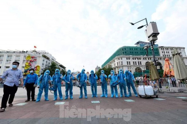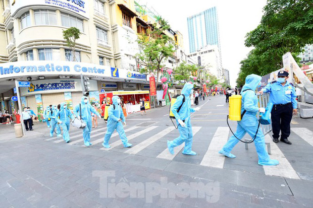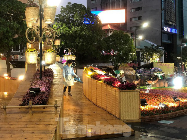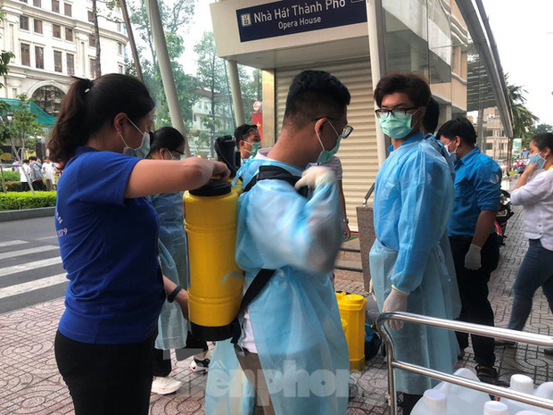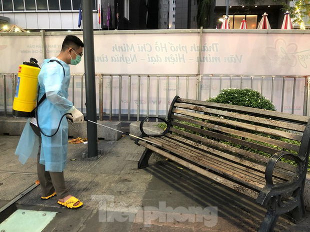 Để phòng chống dịch COVID-19, vào 17h mỗi ngày, sau khi khách đã rời đường hoa Nguyễn Huệ (TP.HCM), Thành đoàn sẽ thực hiện nhiệm vụ phun khử khuẩn toàn bộ khu vực này.