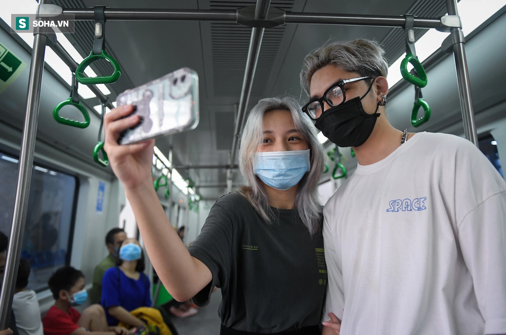 Hai bạn trẻ Hương Giang và Cao Khang (nhà ở Hào Nam) khá háo hức khi lần đầu được đi thử tàu điện trên cao. Khang cho biết mình từng được đi tàu điện ở Nga. Nhưng lúc đó, Khang quá nhỏ nên không nhớ cảm giác.