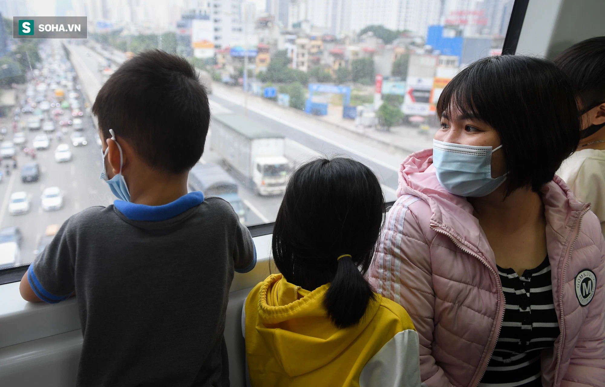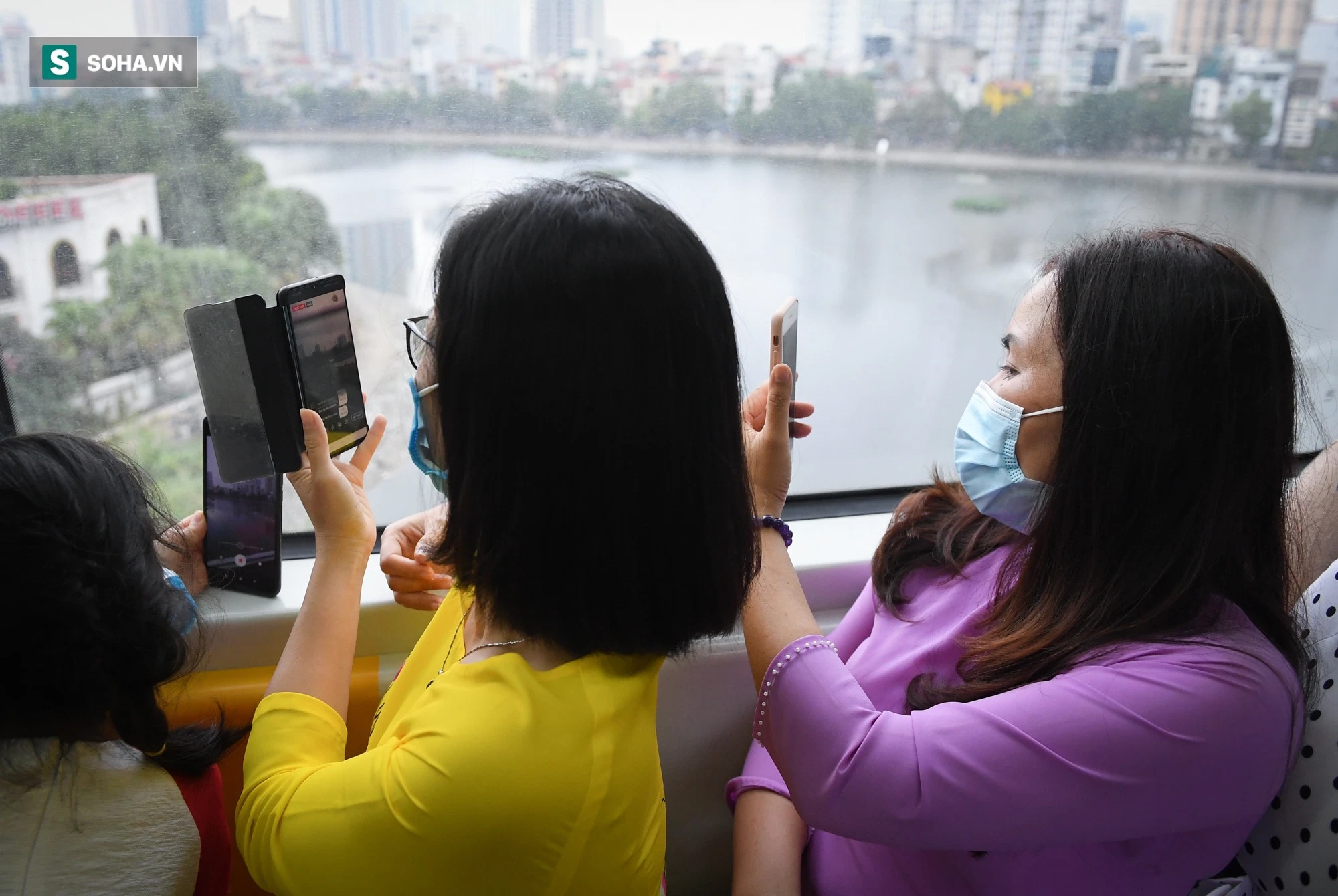 Trong suốt chặng đường 13 km, hành khách thích thú ghi lại khung cảnh Hà Nội từ trên cao. Anh Quang, nhà ở Nguyễn Trãi cho biết, hôm nay, cả gia đình anh cùng nhau đi thử chuyến tàu.