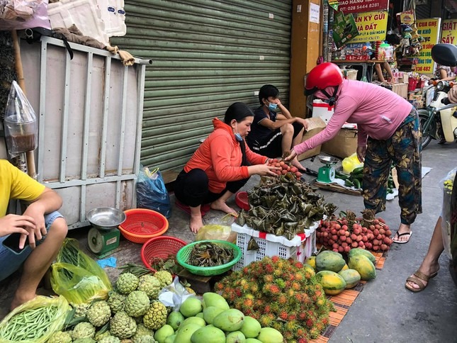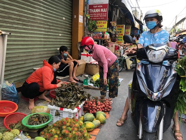 Do thành phố thực hiện giãn cách theo Chỉ thị 15 của Thủ tướng Chính phủ để phòng chống dịch bệnh COVID-19, nên hoạt động mua - bán của người dân TPHCM sáng Tết Đoan Ngọ diễn ra đều rất chóng vánh.