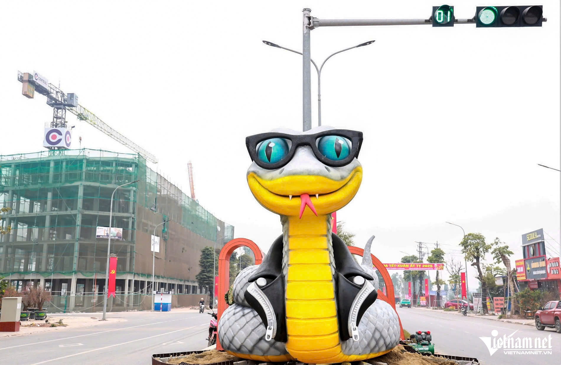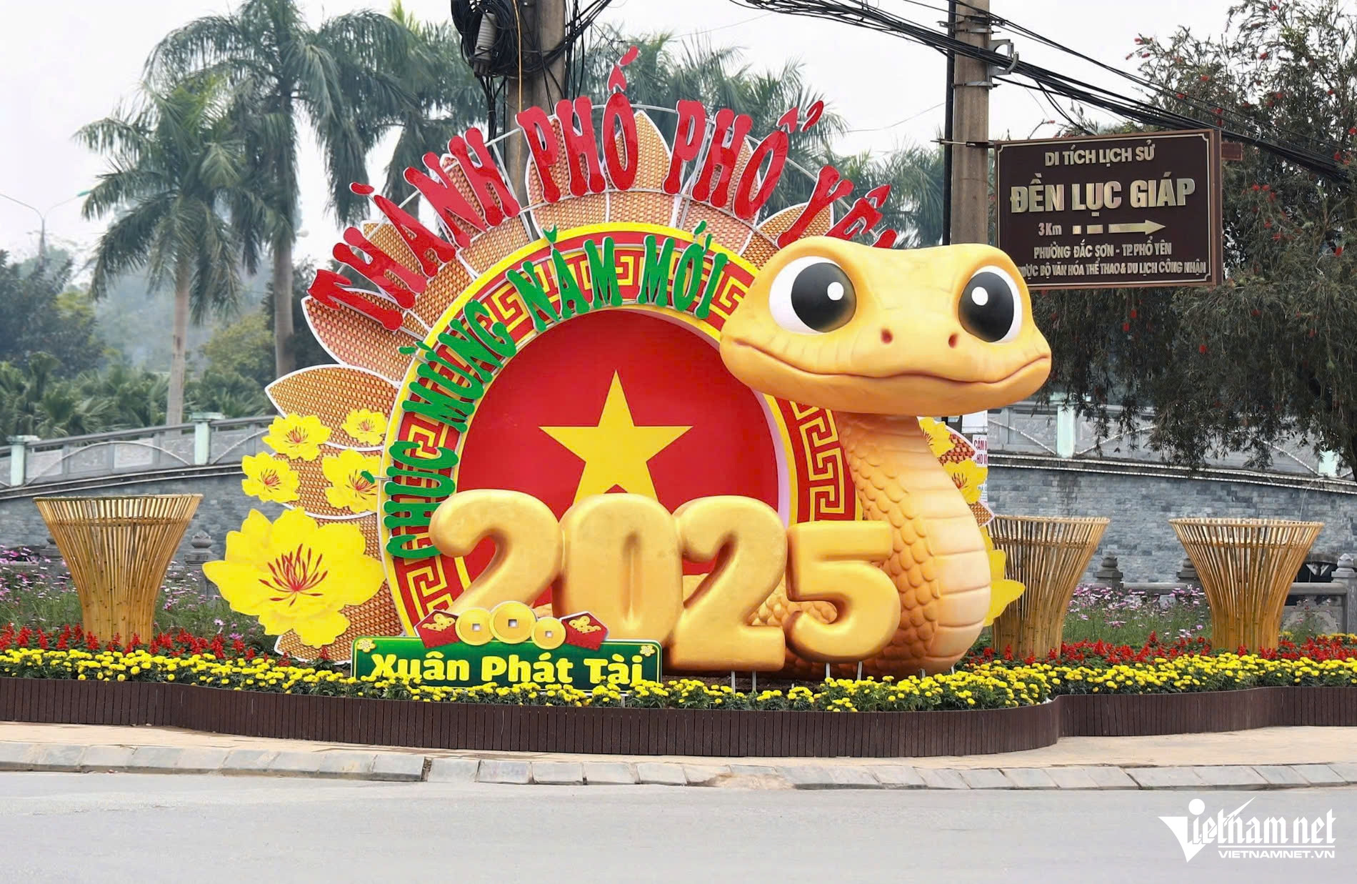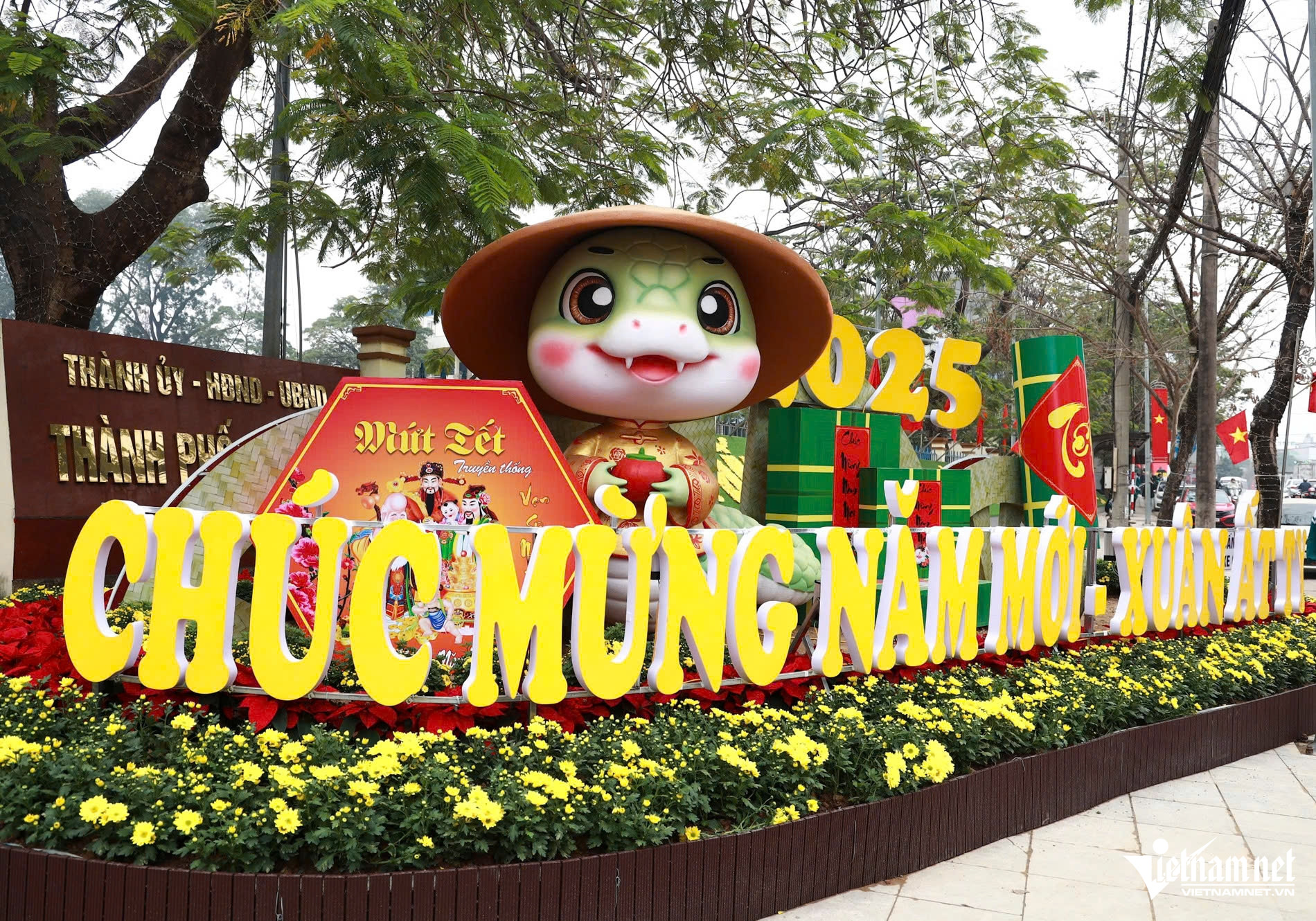Tại TP Phổ Yên (Thái Nguyên), linh vật rắn được đặt tại quảng trường với biểu cảm ngộ nghĩnh, đáng yêu, thu hút sự quan tâm của đông đảo người dân.