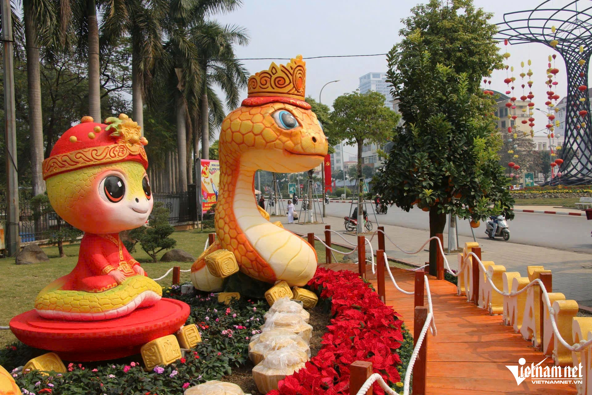Không chỉ mang ý nghĩa chào đón năm mới, những "bé Na" (cách gọi vui của người dân về linh vật rắn) còn góp phần tạo nên không khí xuân tươi vui, rộn ràng trên khắp các đường phố.