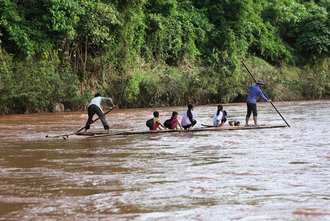 Con suối chảy qua bản Huổi Lụ 1 (xã Pá Mỳ) vào mùa mưa nước sâu năm mét, lòng suối rộng 40 m khiến thầy trò chỉ còn cách chèo bè để vượt qua. "Trước giờ khai giảng, tôi phải đi đón các em học sinh thì mới yên tâm. Vào mùa mưa, việc bơi qua sông lấy bè chở các em đi học khi dòng nước lớn chảy siết là chuyện thường xuyên", thầy Lò Văn Việt (giáo viên trường Pá Mỳ) nói. |