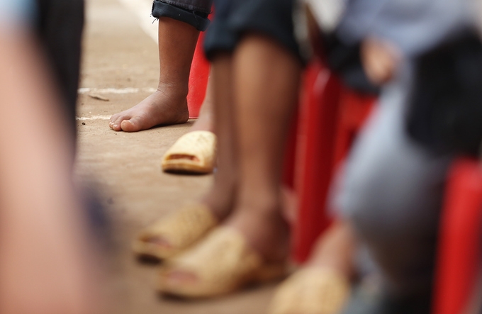 Các em học sinh thường đi dép nhựa đến lớn, một số đi chân trần |