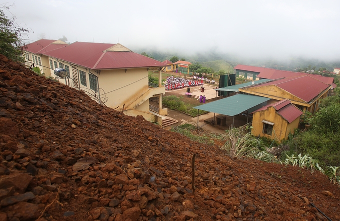 Trường Pá Mỳ mới được xây dựng những đã bị mưa lớn gây sạt lở một dãy nhà. |