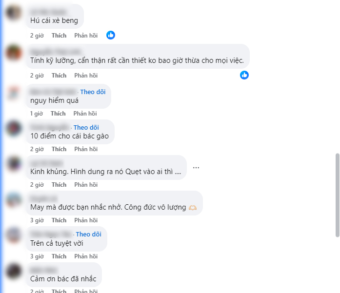 Ngay lập tức, tài xế chiếc xe có cam hành trình vội vã vượt lên ngang cabin buồng lái chiếc xe bên cạnh và cảnh báo những người bên trong. Đoạn video cũng kết thúc ngay sau đó nhưng nhiều cư dân mạng đã rất tán thưởng hành động của tài xế xe có cam bởi sau khi xem kỹ lại đoạn video, nhiều người không khỏi kinh hãi về sự nguy hiểm của chiếc xà beng có thể gây ra với các phương tiện khác, đặc biệt nếu va trúng người đi xe máy.
