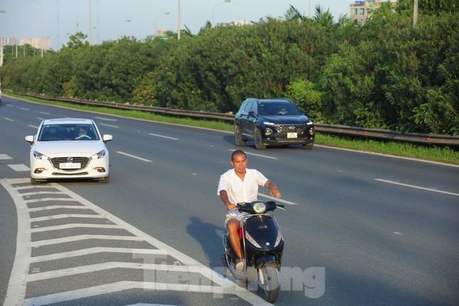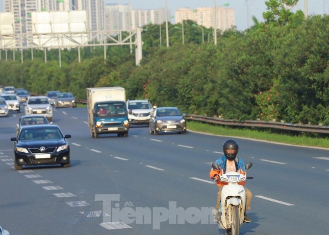 Mặc dù Đại lộ Thăng Long cấm các phương tiện xe máy, song nhiều người vẫn bất chấp nguy hiểm đi vào làn ô tô chạy với tốc độ cao gây mất an toàn giao thông.