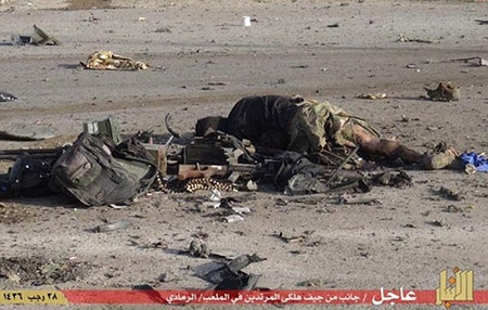 Một binh sĩ của quân đội Iraq thiệt mạng. Ảnh: Daily Mail |
